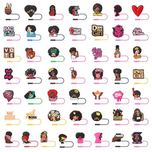 50 Pcs Pink Black Girl Straw Cover Caps Compatible with Stanley Cup, Silicone Cute Reusable Straw Toppers compatible with Stanley Cup Accessories 10mm