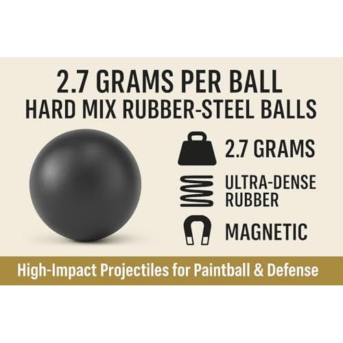 - 50 x Hard Mix Rubber Steel Balls, designed to meet the needs of 50 caliber paintball and RAM weapons enthusiasts. Crafted with a blend of robust rubber and steel powder (50%), this unique ammo showcases exceptional durability. Manufactured in accordance with EU Standards, these rubber-steel balls exemplify superior quality.