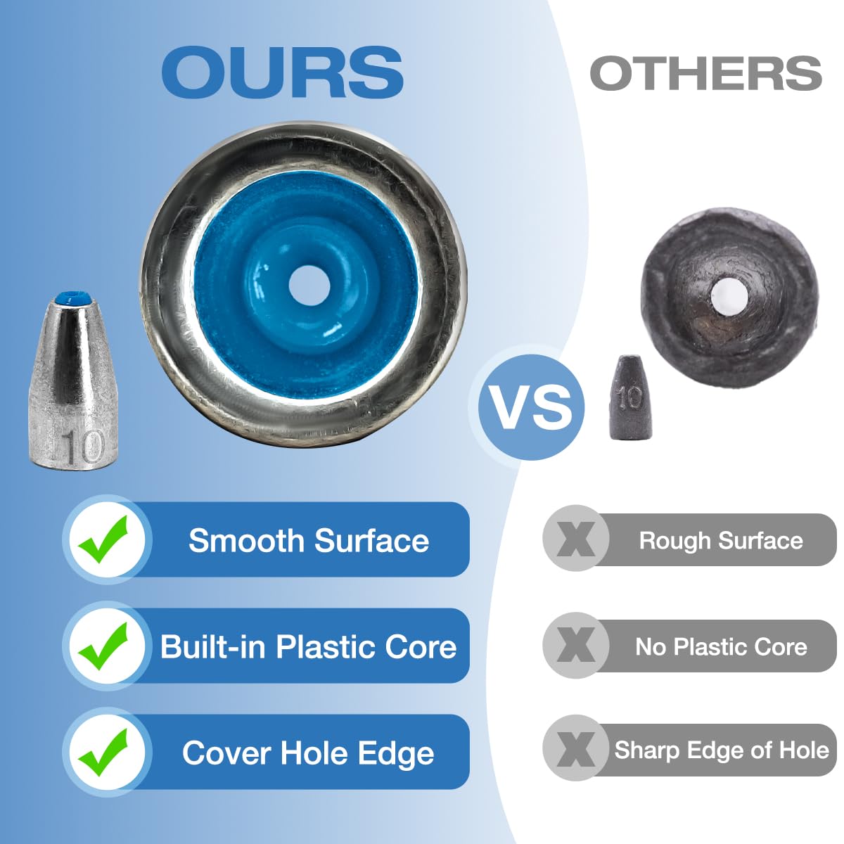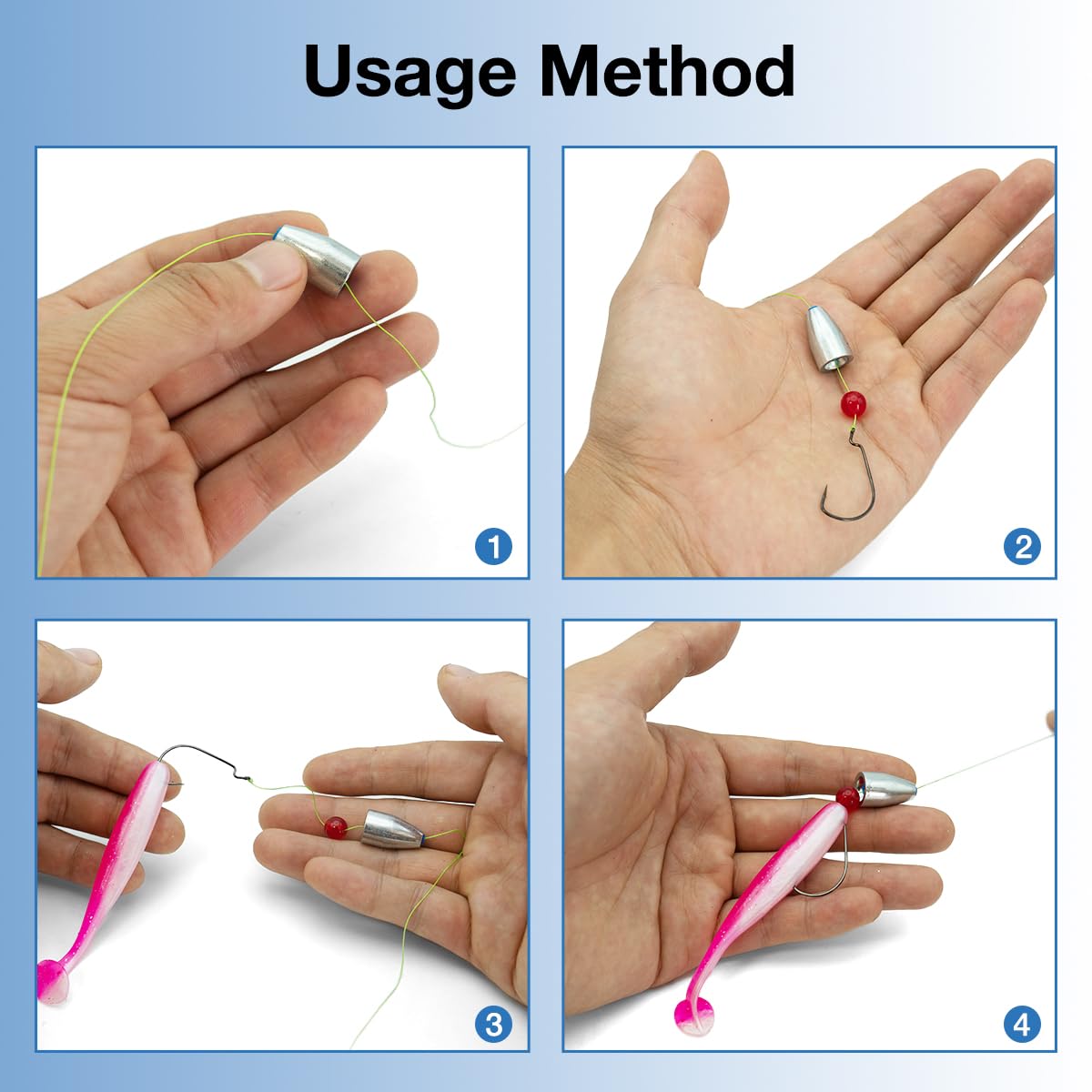 Details: The built-in plastic core design reduces wear and tear on the bullet weight during fishing, giving the entire fishing rig higher strength. Carbon steel alloy fishing bait has higher hardness, providing better feedback to the fishing rod during the bottoming process