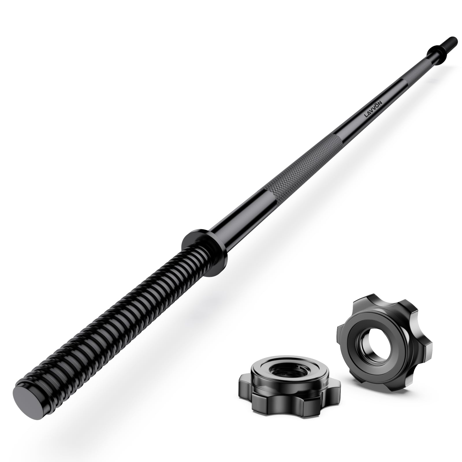 - HEAVY-DUTY CHROME STEEL: Our steel rods feature hardened nickel plating for good corrosion and oxidation resistance, Comes with 2 pcs Anti-slips swivel steel clamps to hold 1" weight plates, offering a firm grip and preventing weights from sliding during lifts.