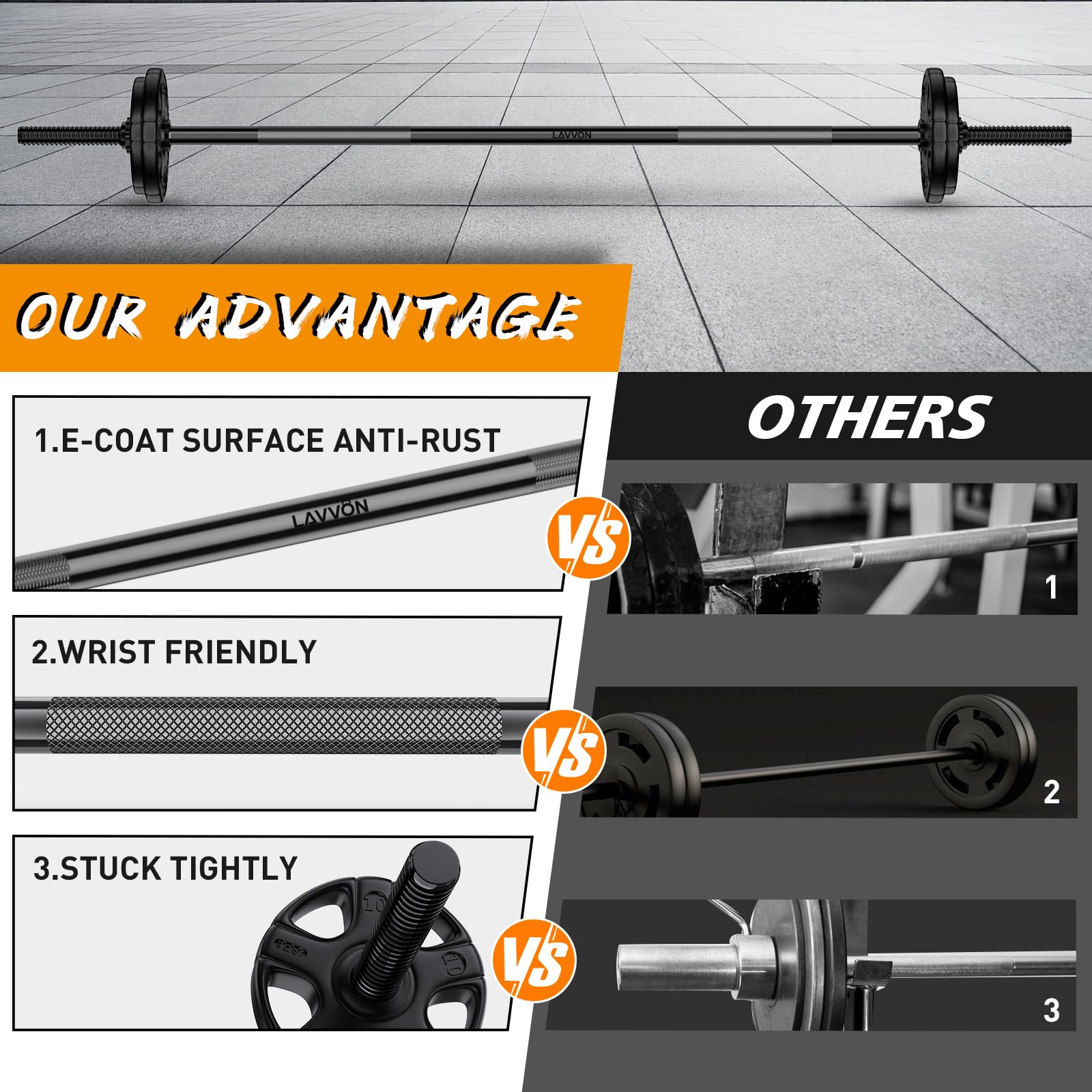 - SUPERIOR SPECS: The length of the olympic bar is 55 inches, 1inches diameter. High quality heavy duty solid steel, has the characteristics of high load-bearing capacity and flexibility, Our strength training bars can hold 480lbs weight capacity.