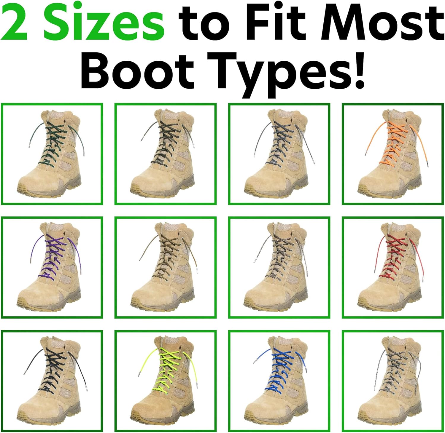 - LENGTH / COLOR: We offer our 550 paracord laces in 54-Inch (4.5 feet) or 72-Inch (6 feet) options (approximately 4mm in Diameter (.16 inches), so you can find the right fit for your shoes. Paracord Planet’s paracord shoelaces are also available in many different color options, so you are sure to find the right fit! Colors available are: Royal Blue, Orange, Olive Drab, Neon Green, Emerald Green, Imperial Red, Desert Camo, Coyote Brown, Charcoal Gray, Black, ACU Digital Foliage, and Bright Purple.