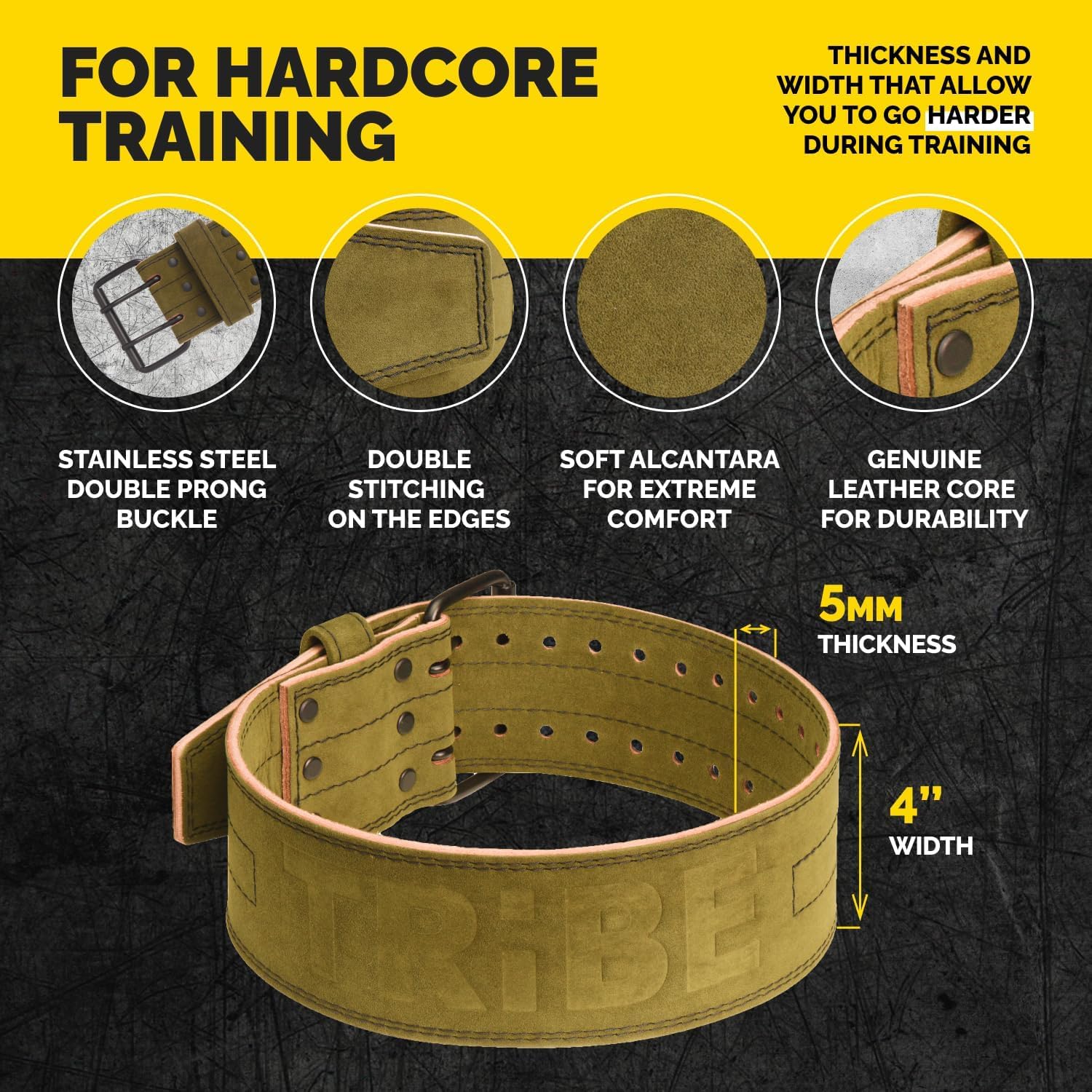 - STRENGTH AND DURABILITY COMBINED: Made from 2-layer genuine leather and sealed with a sturdy 2-prong buckle, it's the ultimate weight lifting back brace. With the TRIBE debossed logo, you're not just wearing a belt; you're wearing a badge of quality