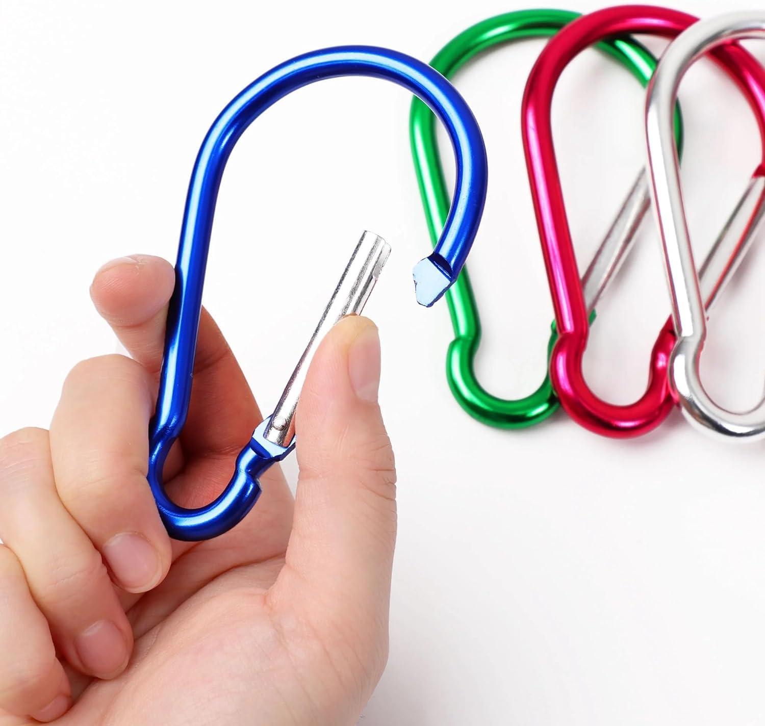 Details: ๐๐๐These versatile 4-inch aluminum carabiner clips come in a convenient set of 5, perfect for organizing your gear and keeping essentials secure. The spring-loaded snap mechanism ensures quick attachment and reliable closure, while the durable aluminum construction offers strength without excess weight. These multipurpose clips are ideal for attaching keys, water bottles, camping equipment, or other outdoor accessories to your backpack or belt loop. Each carabiner features a sleek design that's both functional and practical for everyday use. Whether you're hitting the trails, organizing your workshop, or simply need a reliable way to keep your keys together, these carabiner clips deliver consistent performance. The generous 4-inch size provides ample room for multiple attachments, making them particularly useful for outdoor enthusiasts and those who appreciate smart organization solutions.