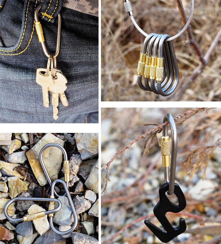 5pcs MINI Titanium Locking Carabiner, Perfect D-Ring for Outdoor and Indoor Use