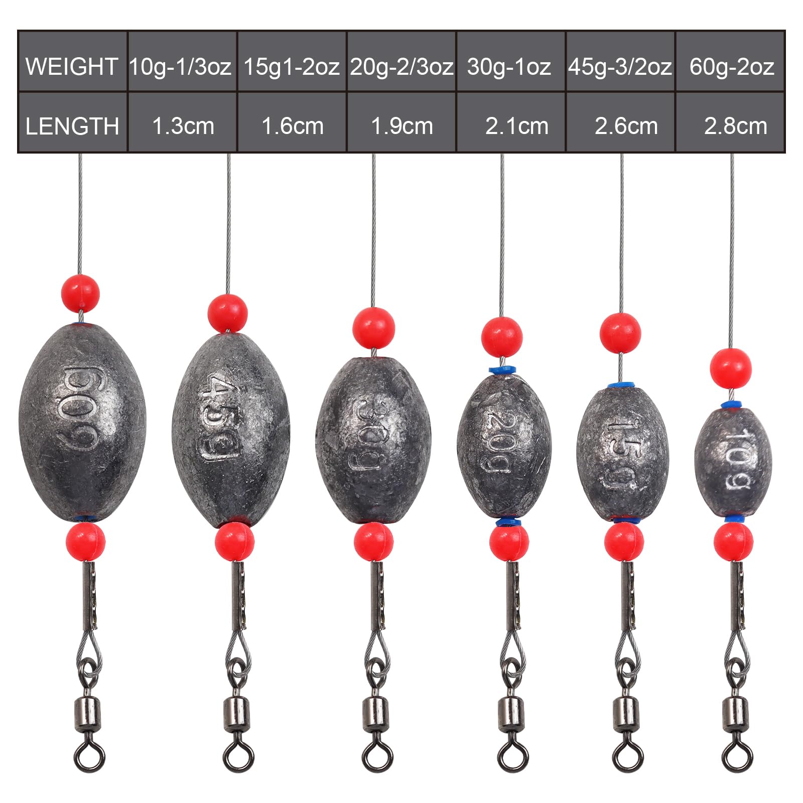 - ATTRACTIVE: Egg fishing weights can slide easily up and down the wire giving noise against the fishing bead. With the noise and glow fishing beads, makes the Carolina Rig more attractive. Fishing weight can increase its rate of sinking, anchoring ability and casting distance. You can throw it anywhere you want