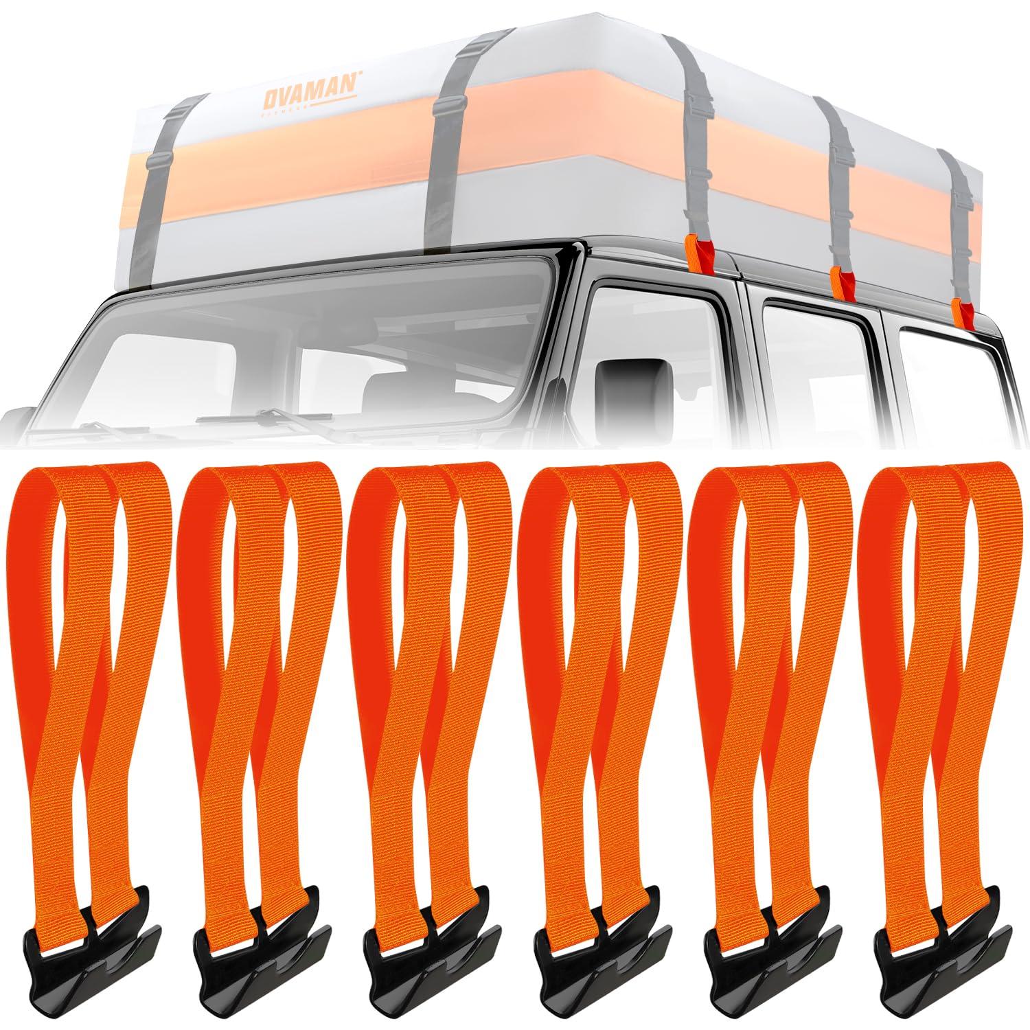 - 【Universal Fit for 99% of Vehicles】 No roof rack required! Each set includes 6 heavy-duty straps with dual loops, offering 12 secure tie-down points (2 per hook). Compatible with kayaks, surfboards, Christmas trees, and most car top carriers. Simply peel back the door seal and install in minutes.