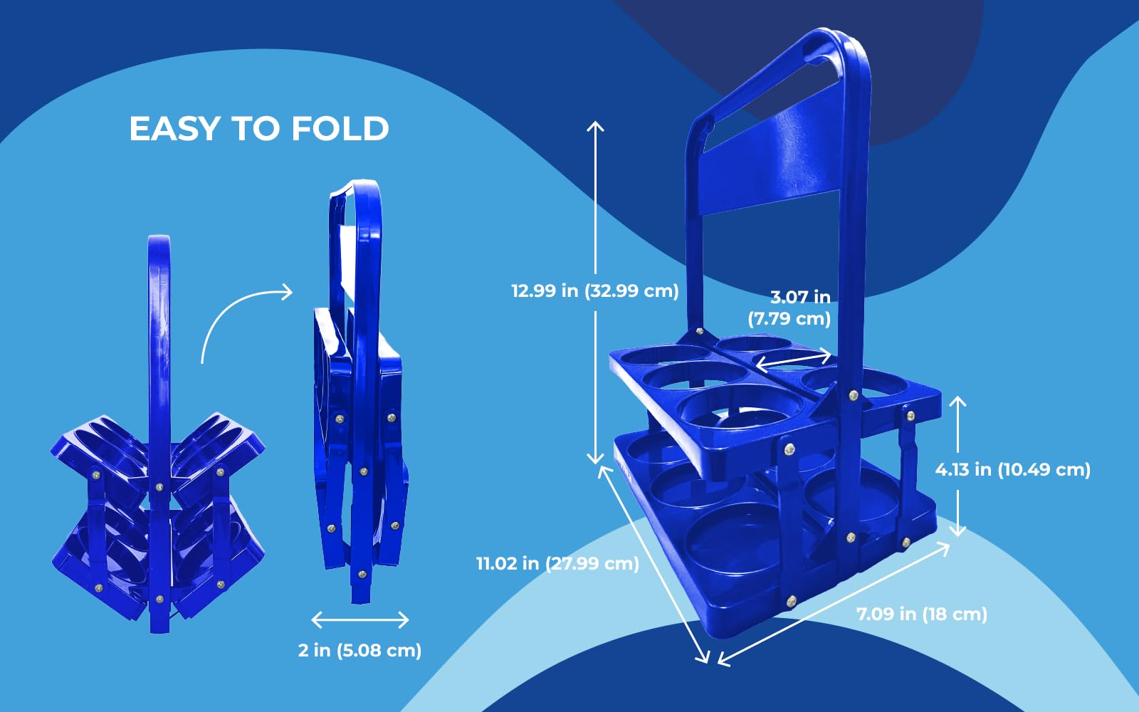 6 Drink Carrier with Handle – Lightweight Cup Caddy for Work, Travel and to-Go Drinks – Collapsible Design (2 Pack, Blue)