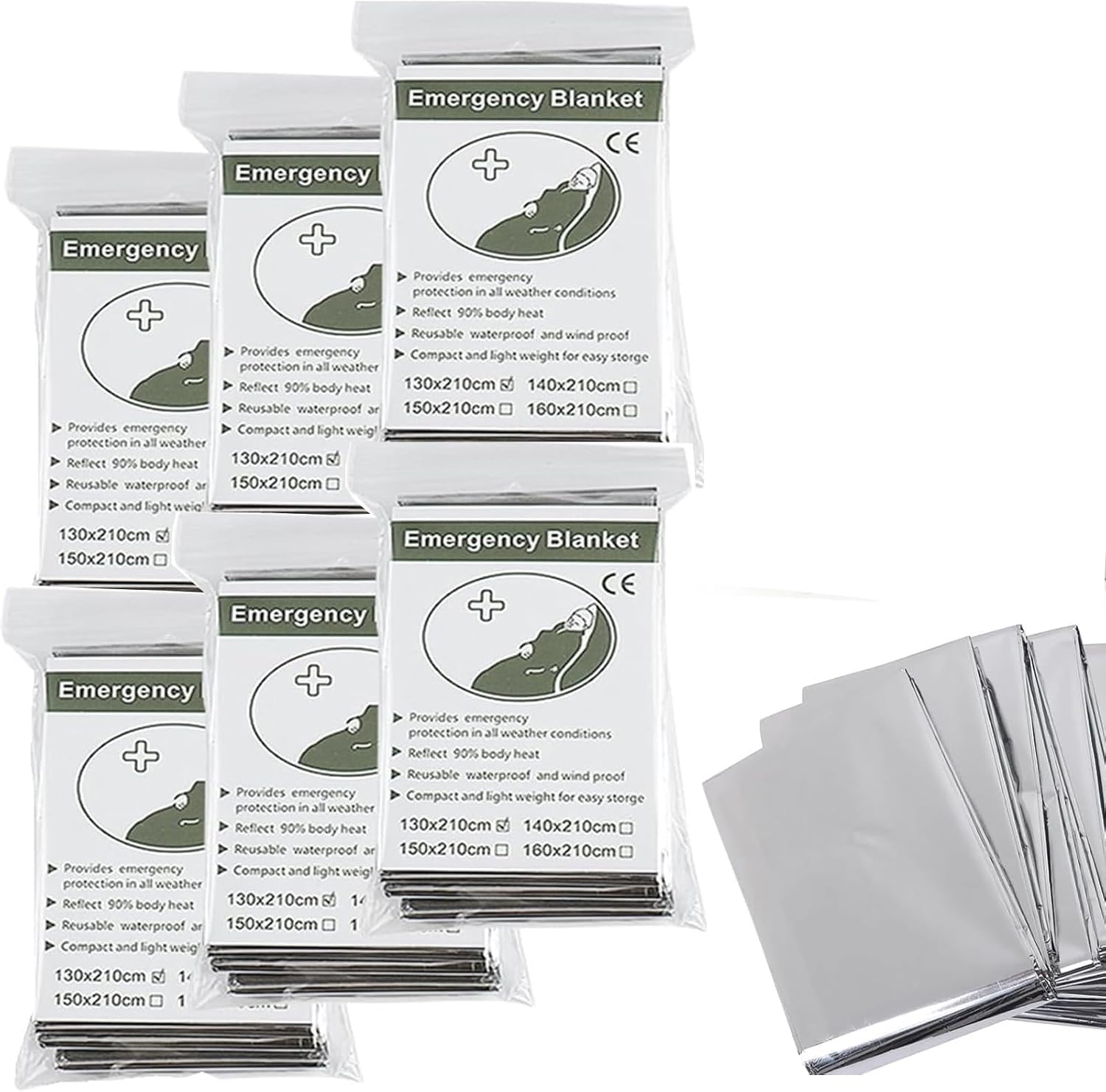 6 Pack Emergency Mylar Blankets,Emergency Survival Blanket Survival Gear & Camping Supplies,Insulating Reflective Foil Survival Blankets for Camping, Hiking, and Outdoor Rescue Kits