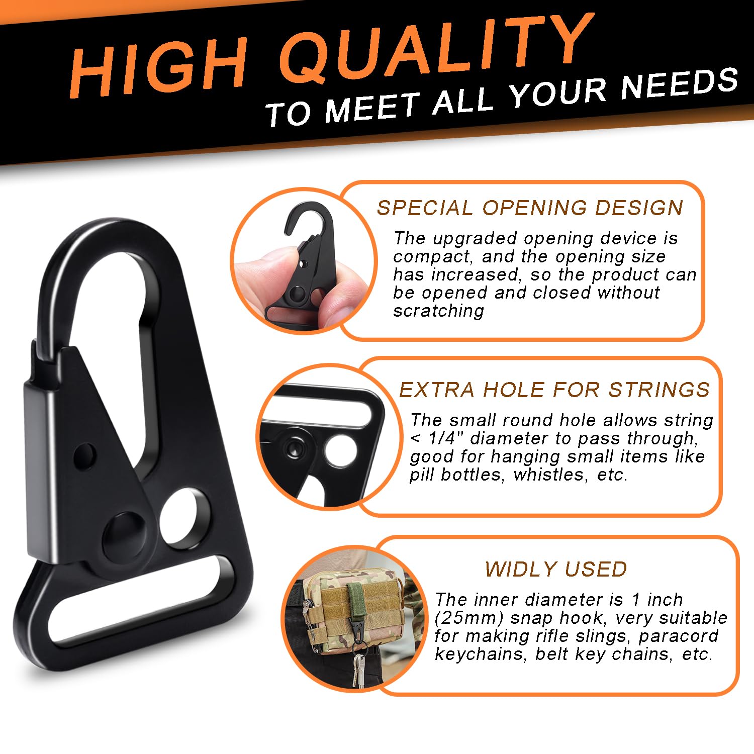 6 Pack Metal Rifle Sling Clips Tactical Snap Hook Enlarged Mouth Single Point Slings Clip for Paracord Webbing Strap Outdoor Accessories - 1"(25mm)