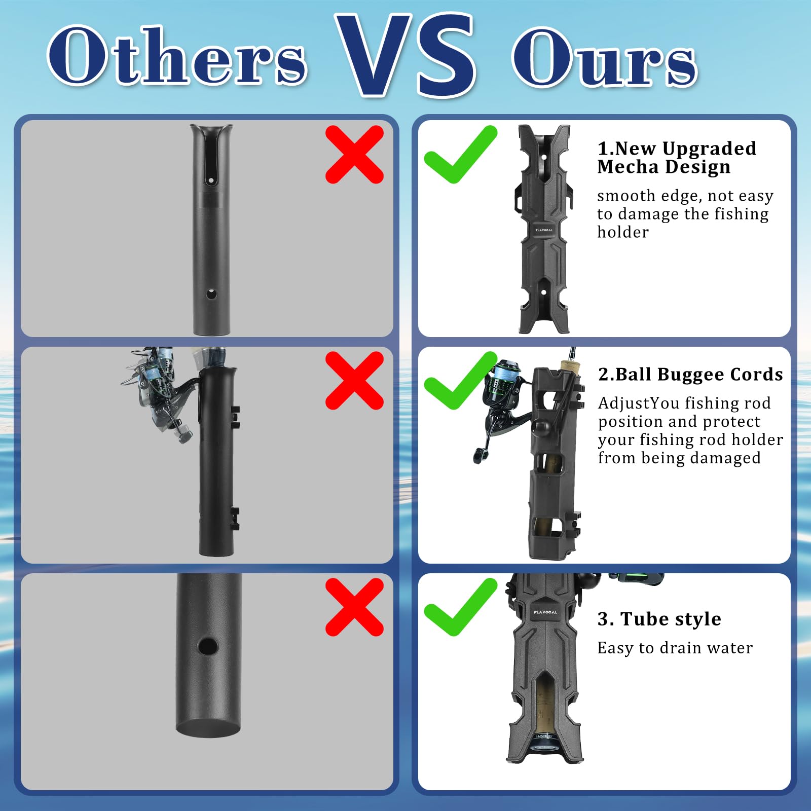 - [Easy to Drain Water] The edge of MECHA boat rod holders for kayak is smooth, which can protect the fishing rod from being damaged. Compared with other bottom seal fishing rod holder, our MECHA design holder is easy to drain water which can keep fishing rod in a dry state that can well protect your fishing rod