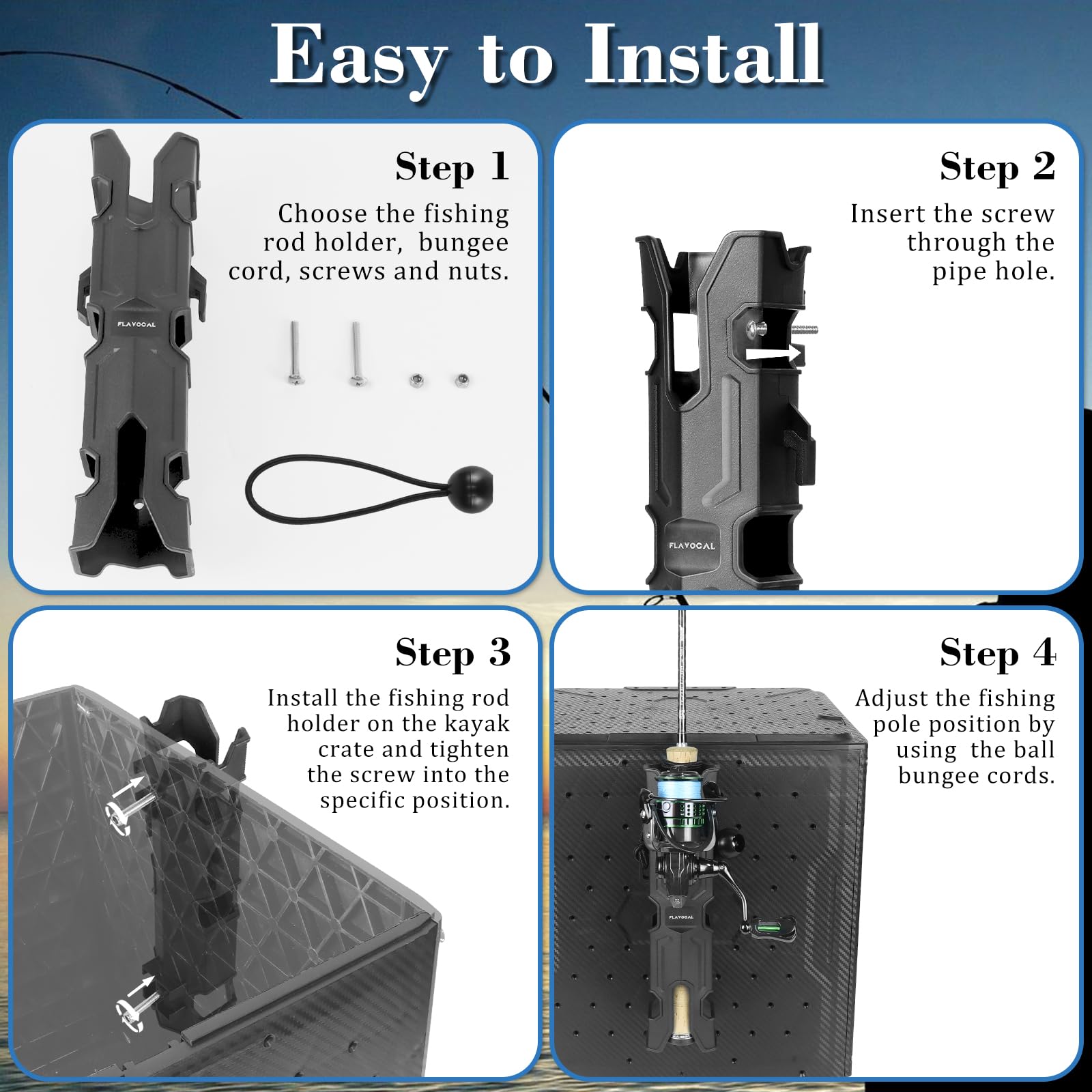 - [Easy to Install] Equipped with 6 x fishing rod holders, 12x nuts, 12 x 8.5 inch ball bungee cords,24x screws, you can install the fishing rod storage tubes for boats without effort. First, choose the fishing rod holder,bungee cord, screws and nuts. Second, insert the screw through the pipe hole. Third, tighten the screw into the specific position. Finally, adjust the fishing rod position by using the bungee cords