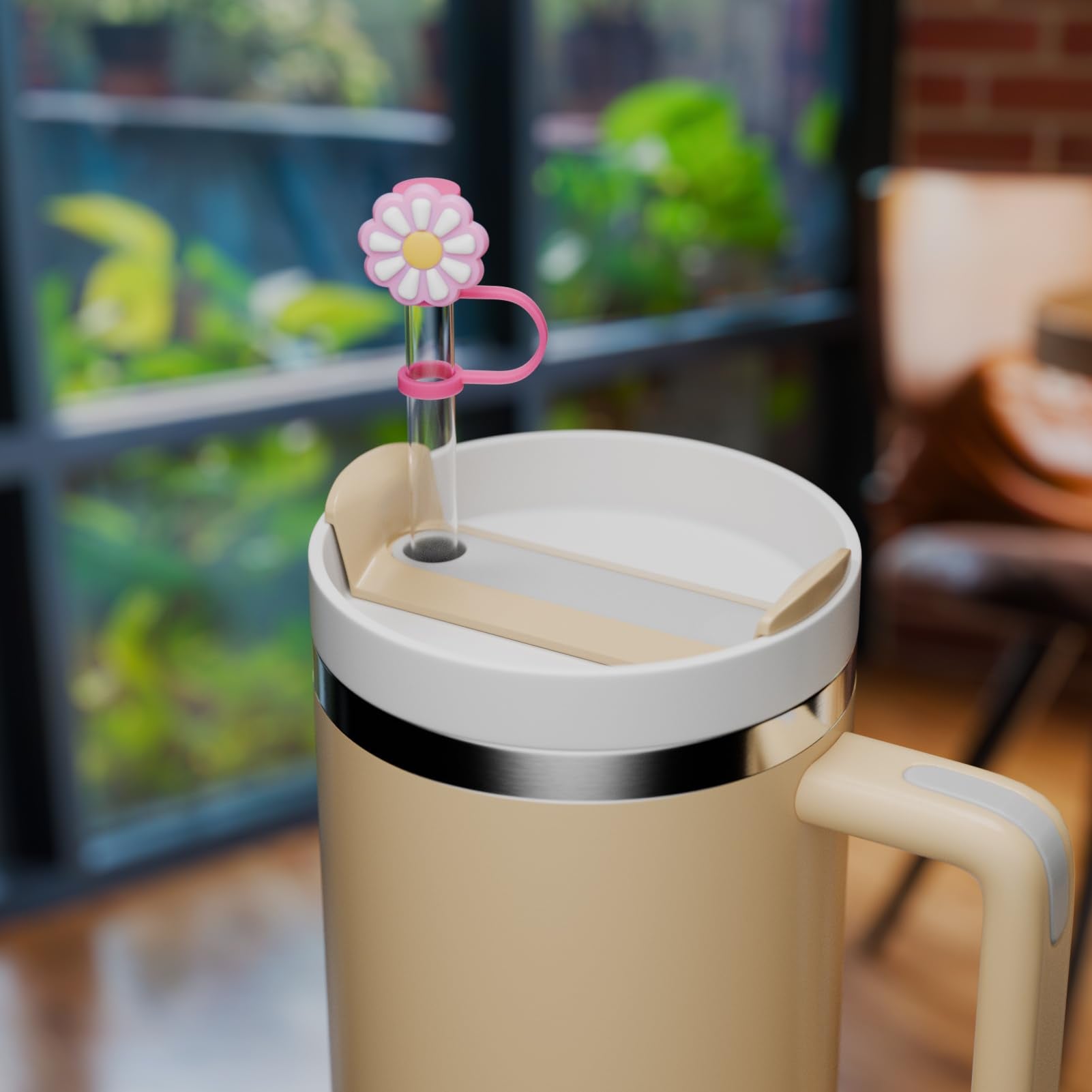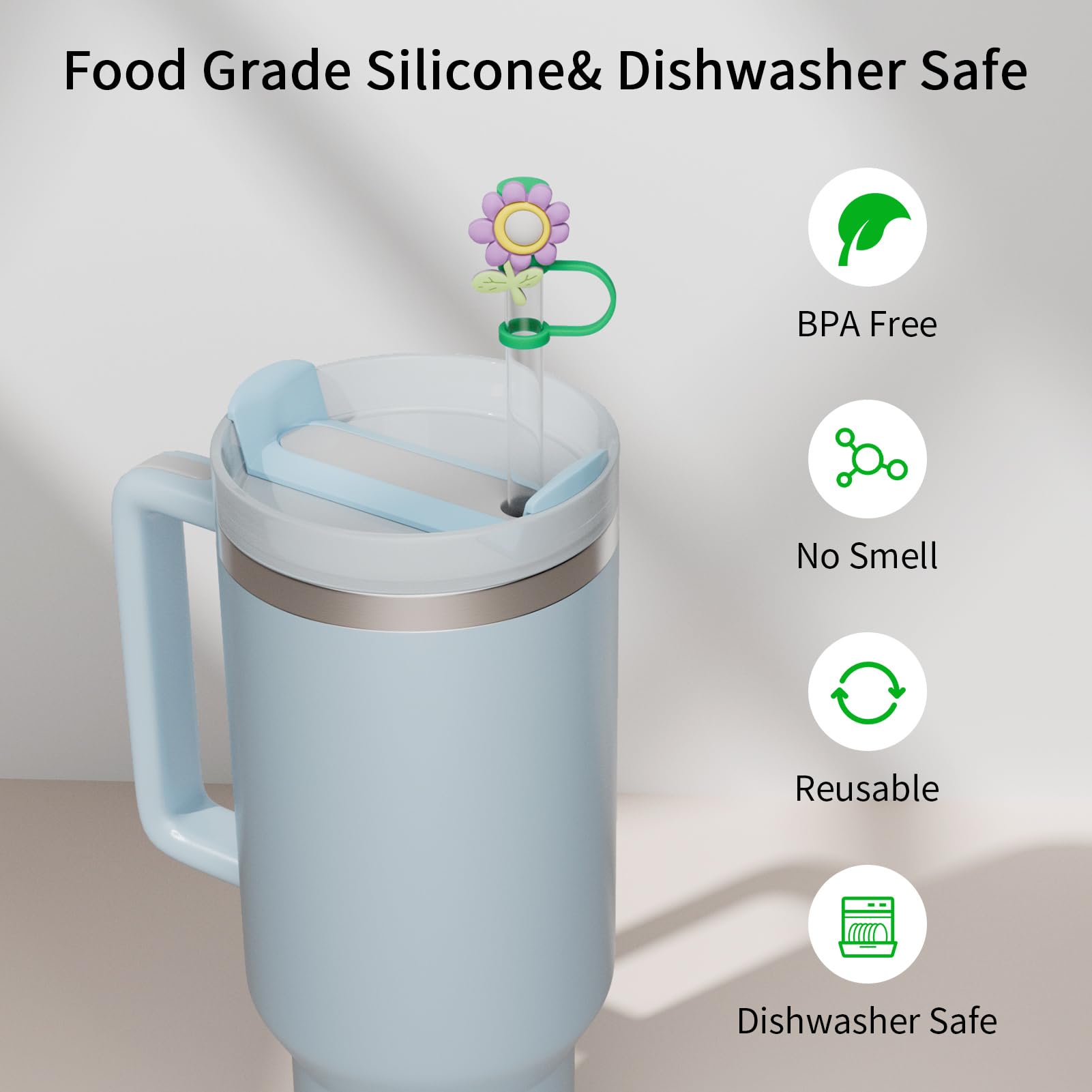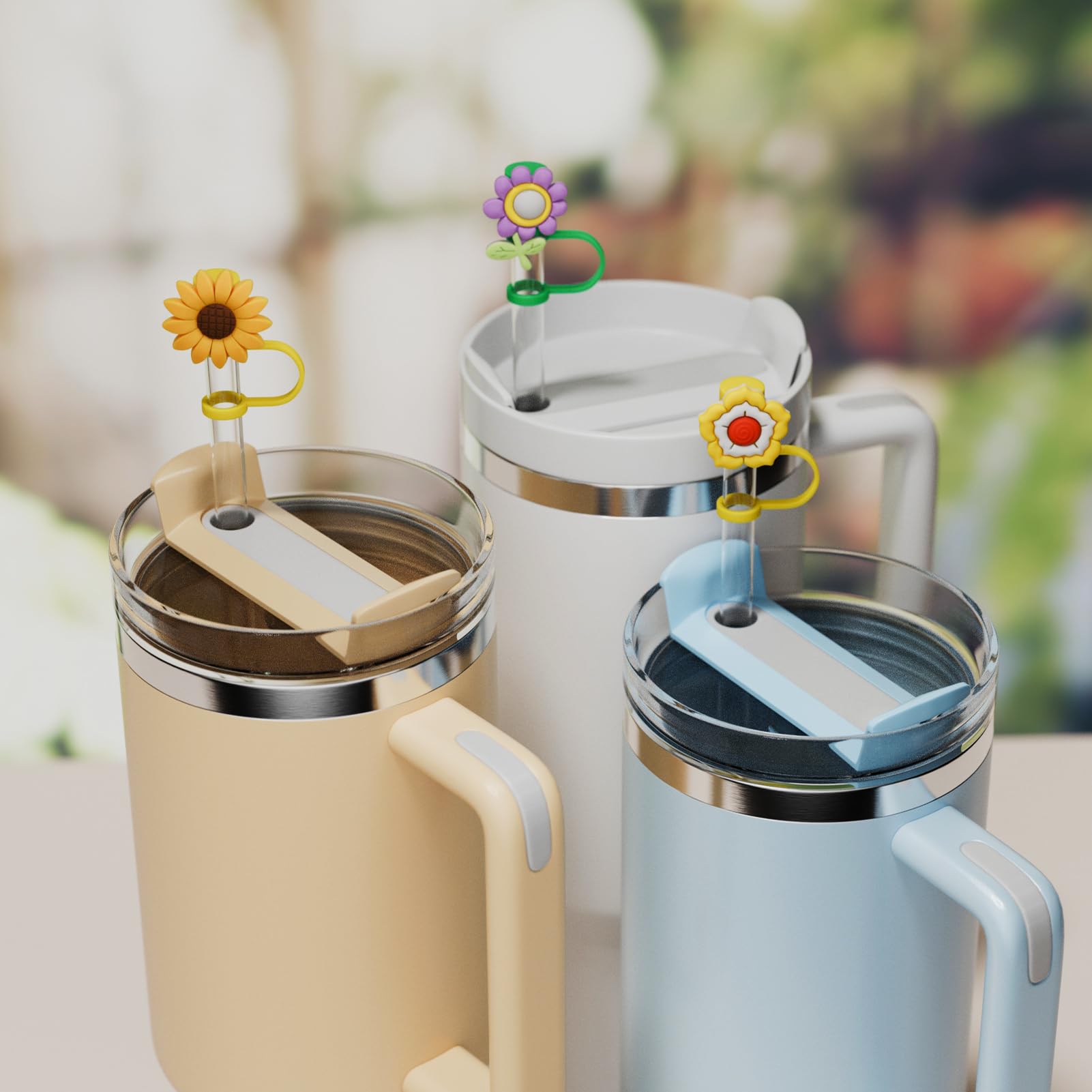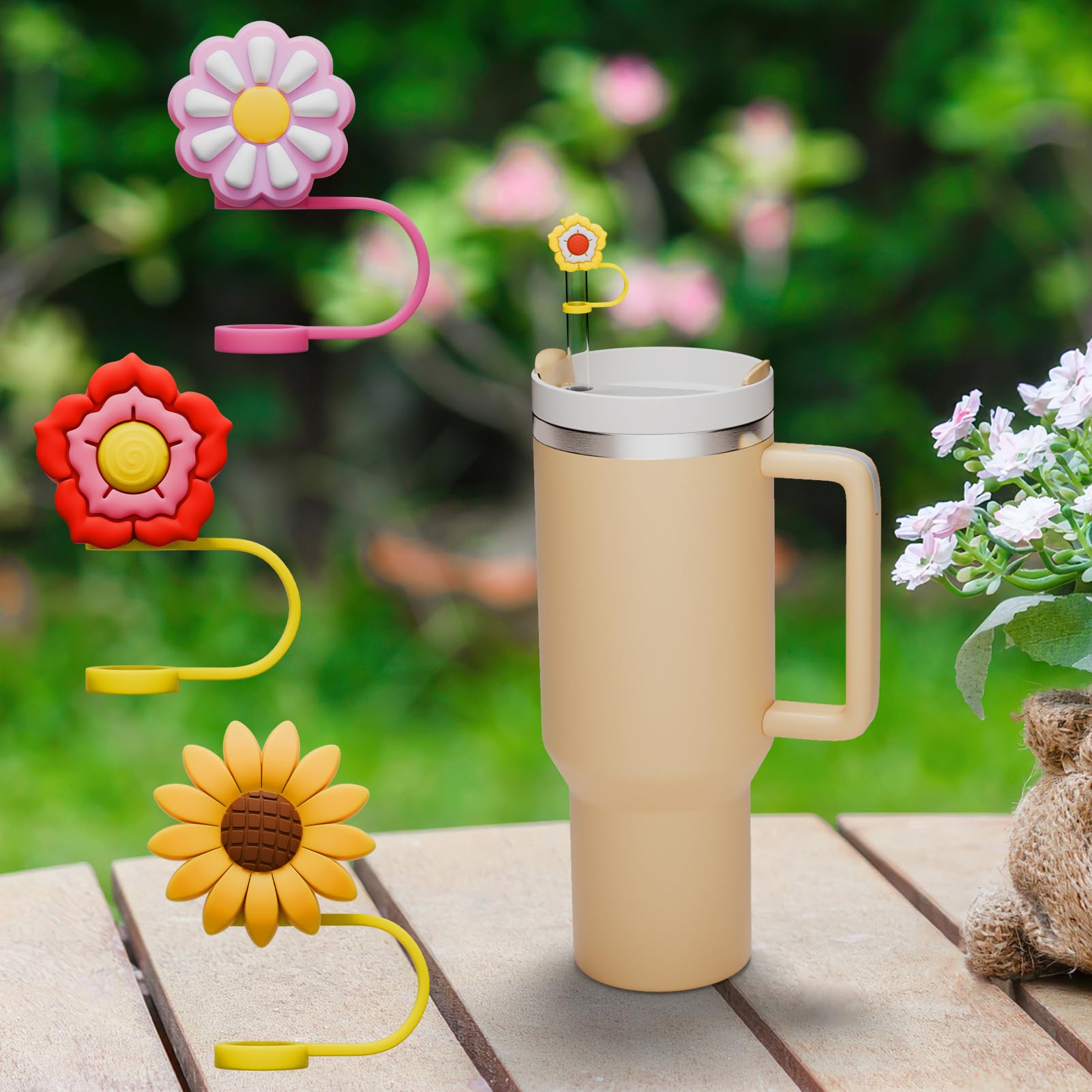 6 PCS Silicone Spill Stopper Set for Stanley Cup Straw Covers 30 oz / 40 oz Tumbler Leak Proof Drink Stoppers Silicone Straw Stopper Caps for Stanley Cup Accessories-Flower