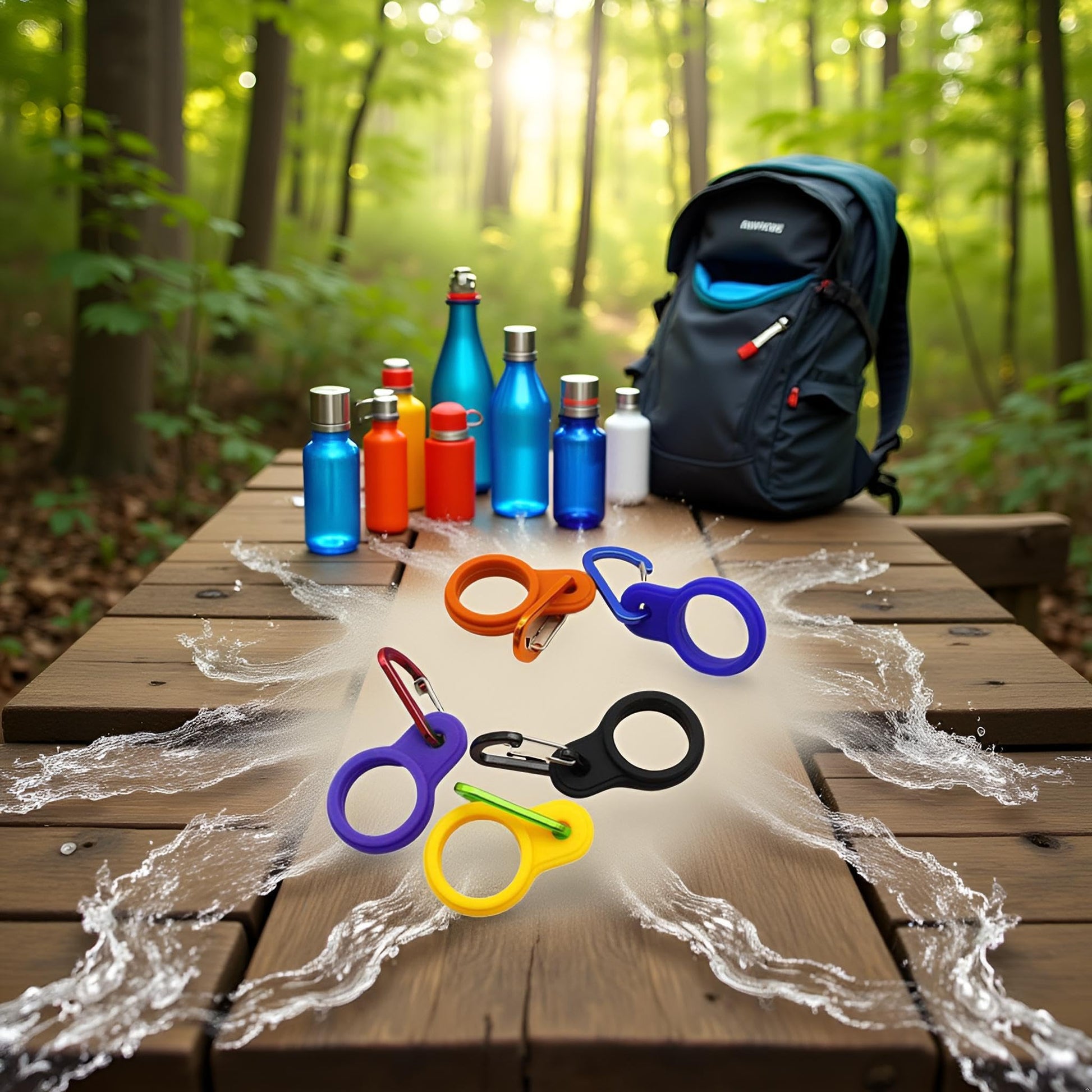 - 💦💦💦VERSATILE DESIGN: Set of 6 silicone bottle holders with carabiner clips for secure attachment to backpacks, belts, or other gear while hiking or camping