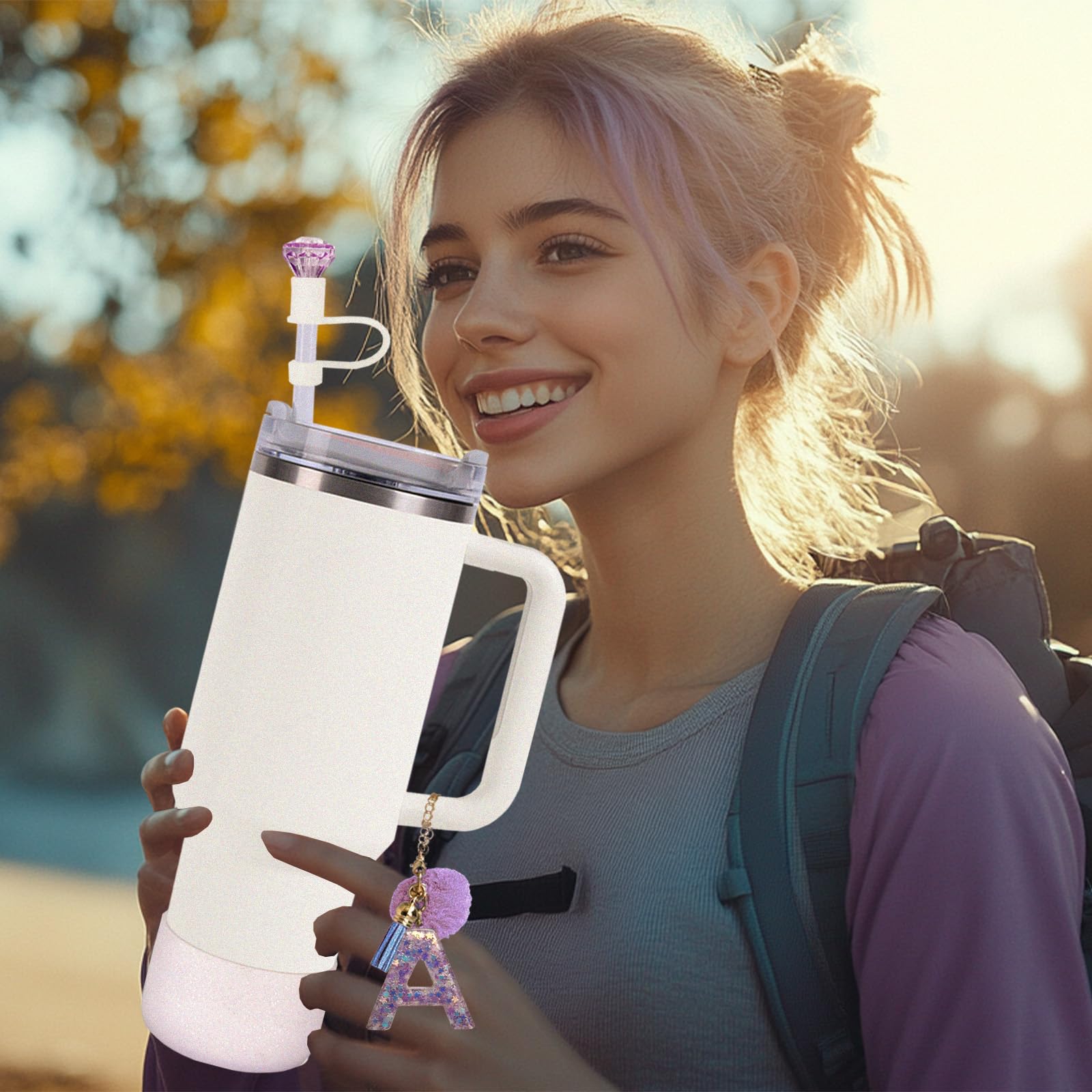 - 【Beautiful design】A beautiful diamond straw cap and blue letter Stanley cup charms make your water cup different from others and more unique