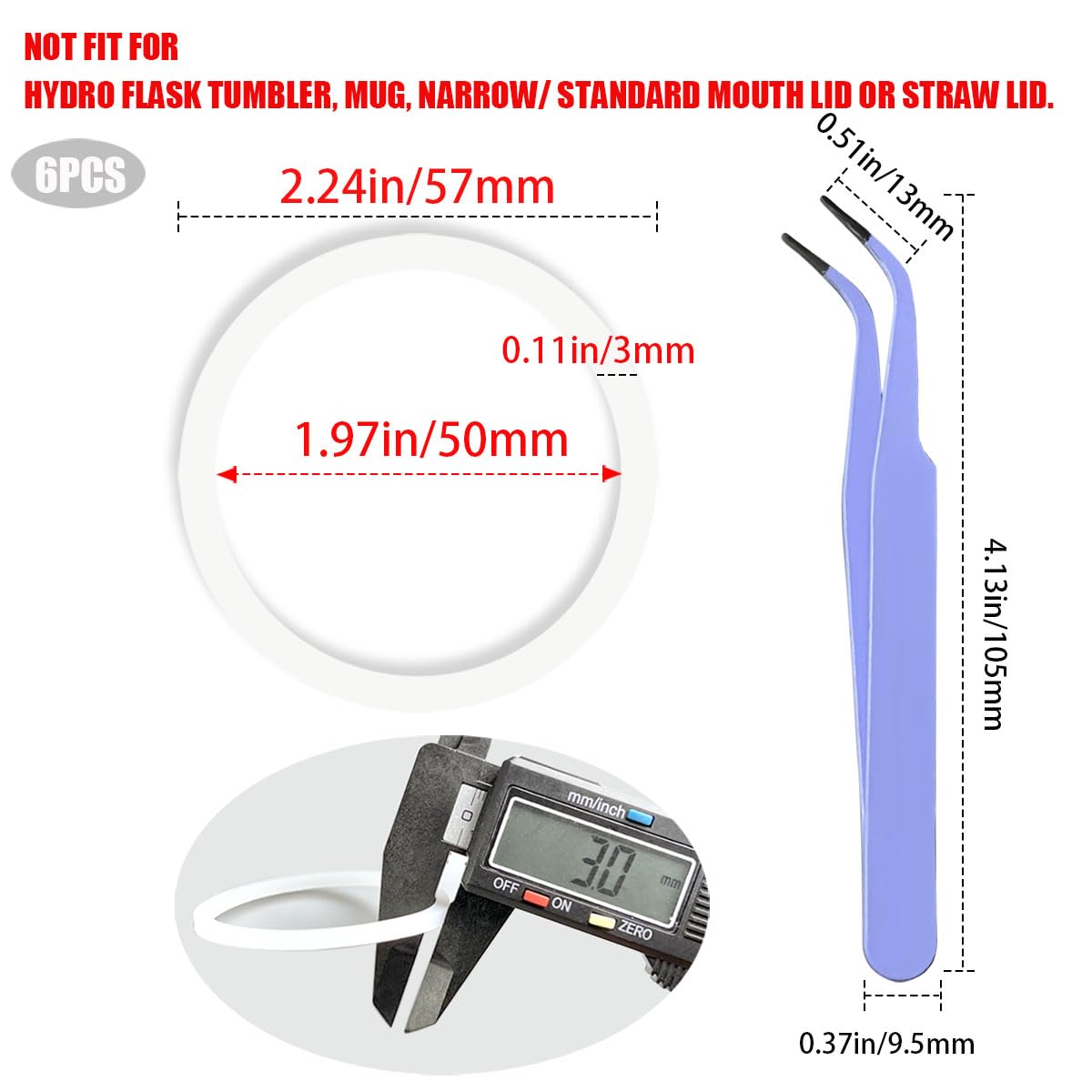 6 Pcs Water Bottle Gasket Replacement for Hydro Flask Wide Mouth Flip Lid, Silicone Water Bottle O Rings, Gasket Seals,Compatible with, Hydroflask Replacement Gasket,2 Inch with Tweezers