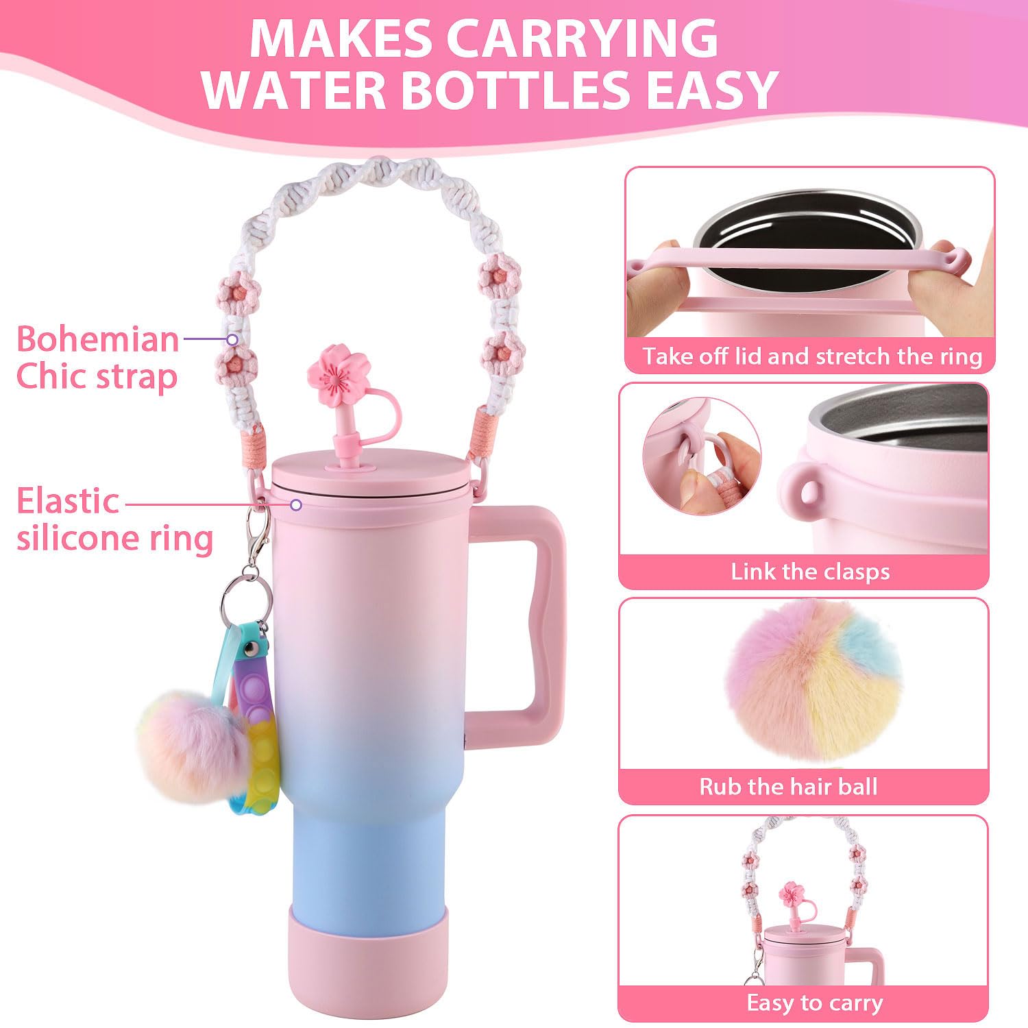 - Stanley Cup Accessories Set - Our water bottle handle comes with an advanced silicone safety ring and handle strap.enhances your stanley cup's aesthetic appeal with additional stanley charms,a must-have stanley cup accessory.