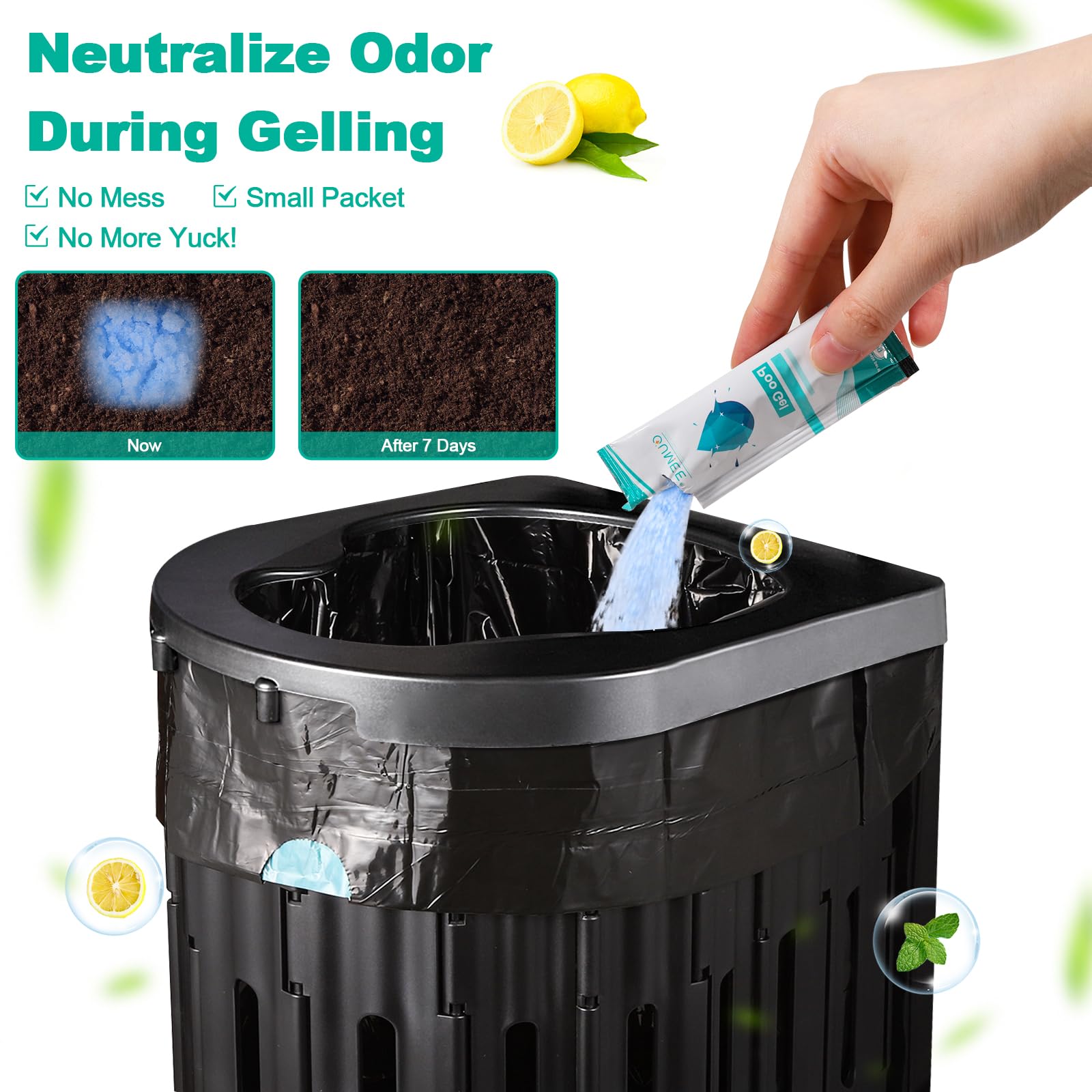 - Super Absorbent Urine Powder Gel: 30 poo gel sticks(10g of each) is made of SAP absorbent polymer and featured with Lemon Fragrance, effectively neutralize odor during gelling, which can instantly absorb 2000 ML pure water/620ml urine and turns into gel within Seconds