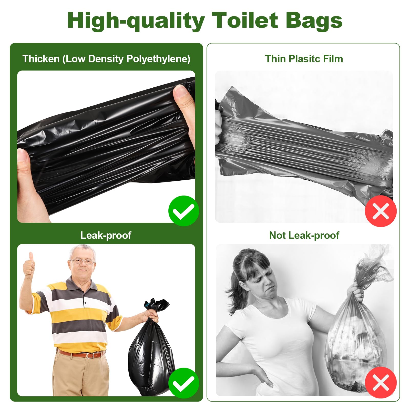 - Thicken & Leak-proof Toilet Bags: OUMEE's camping toilet bag is made of thicken & dual 2 Mil LDPE(Thicken Low Density Polyethylene) material, which is strong can bear about 33Lbs/15kg, no-leaking and enough large for holding a large amount of garbage