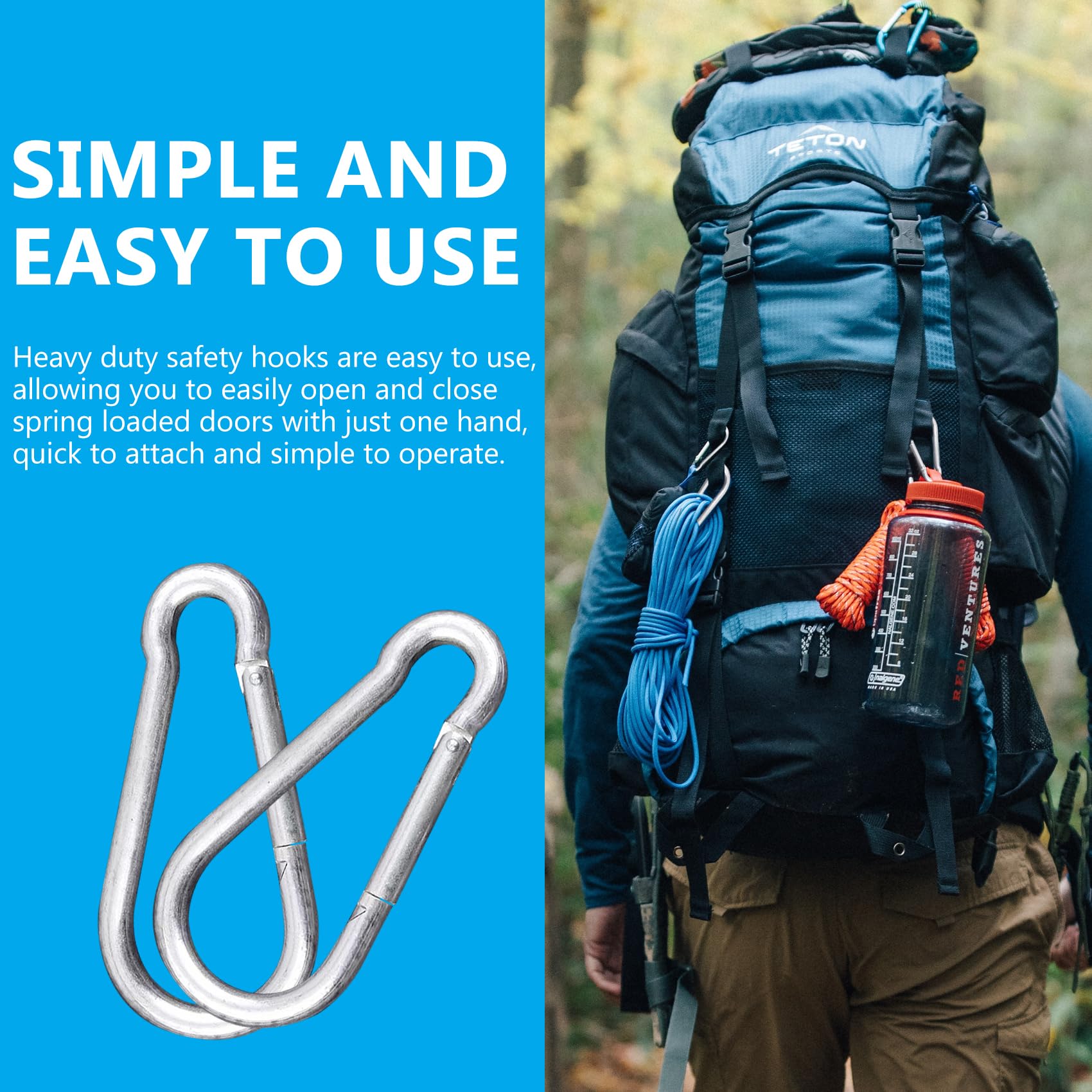 - 【Easy to Use】: The heavy duty carabiner is easy to use, allowing you to easily open and close the spring door with just one hand, quick to connect and simple to operate. With strong load capacity and not easy to break, this outdoor carabiner clip makes it easy to attach important items to it.