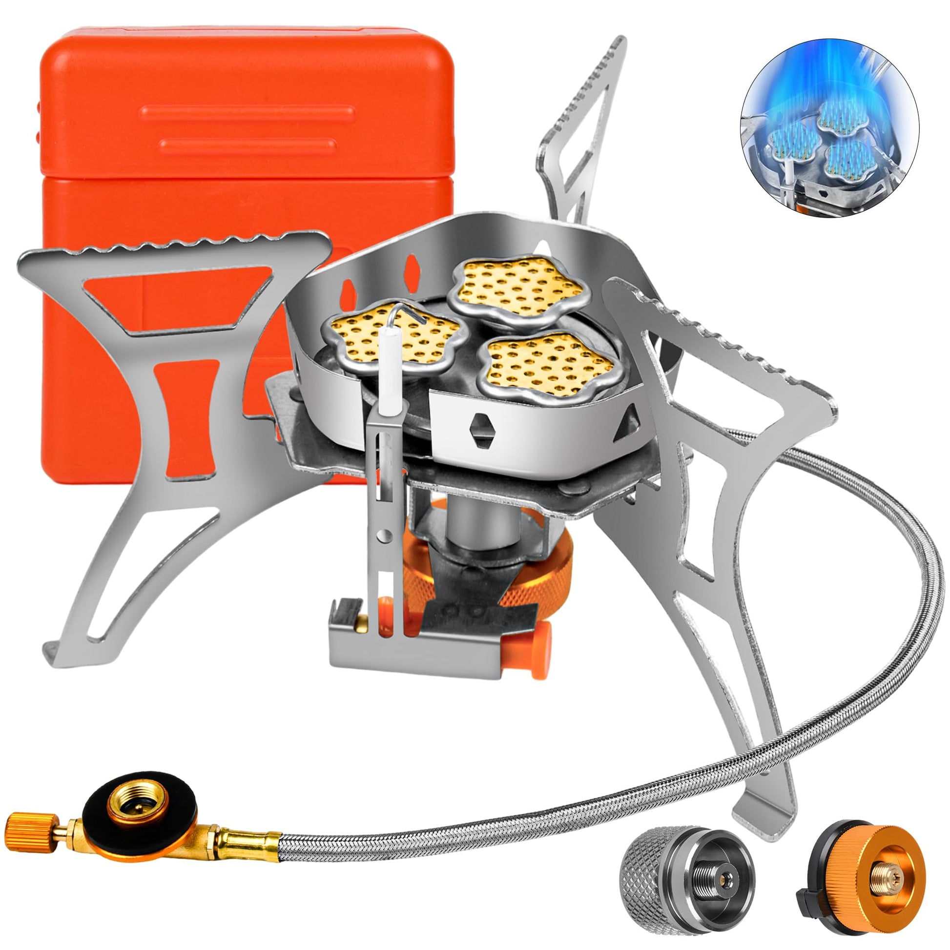 6800W Camping Backpacking Stove, Outdoor Portable Burner Cooking Stove with Fuel Canister Adapter, Piezo Ignition, Carry Case, Foldable Windproof Camping Gas Stove for Picnic Hiking