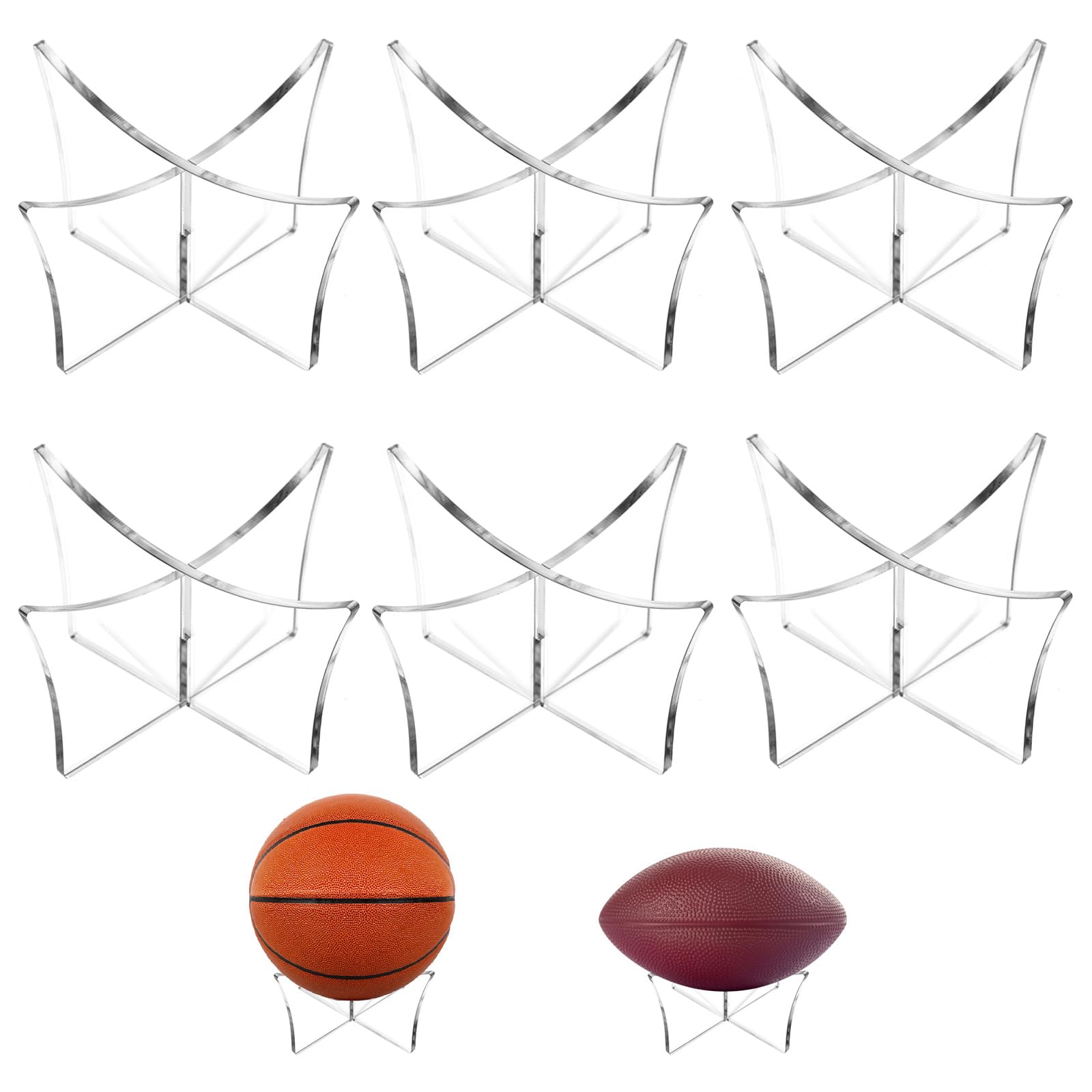 6pcs Acrylic Ball Stand Holder: Display Stand for Basketball Soccer Volleyball Trophy Autograph Memorabilia Storage Rack (Clear)