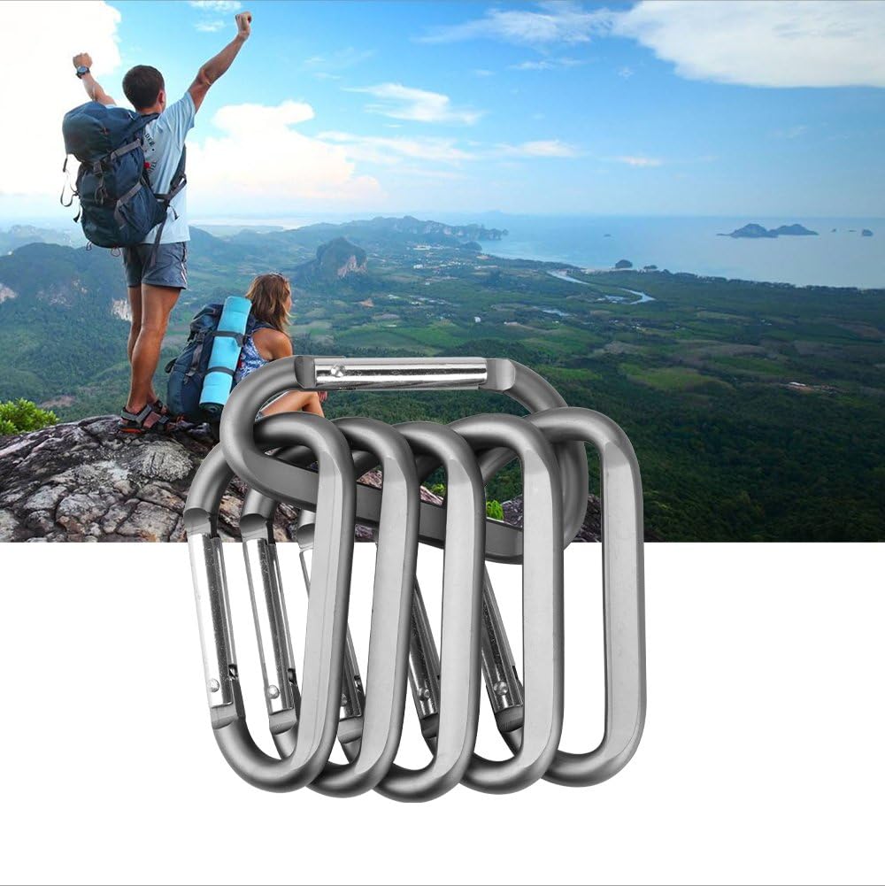 6PCS 3" Aluminum Carabiner Keychain Clip, Light Durable D Shape Nonlocking Caribeaner Hook Buckle for Outdoor Camping EDC Key Chain Ring