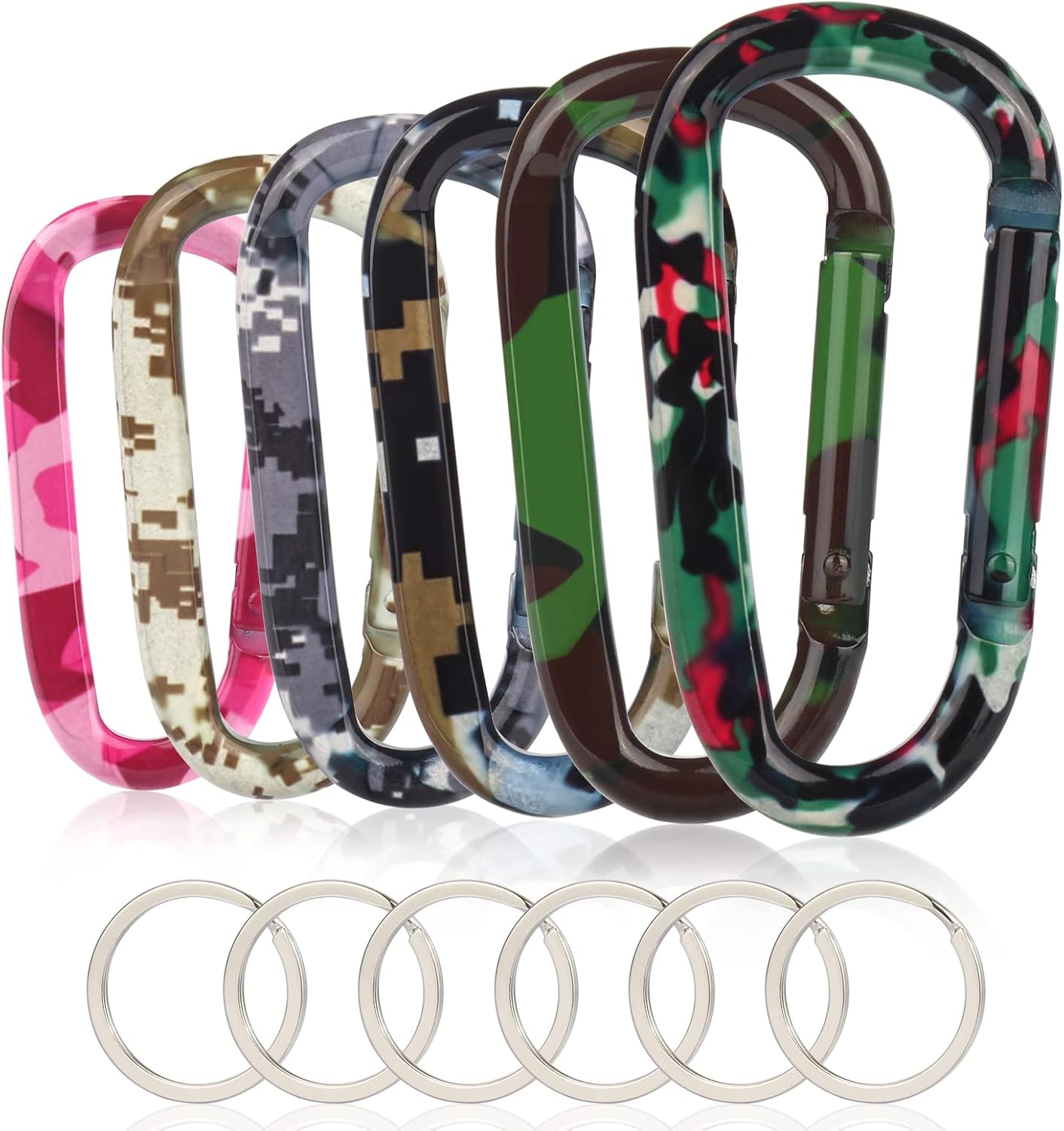 - 6pcs extra keyrings pack, carabineer length: 3"/79mm,package includes 6pcs carabiner clips,6pcs keyrings
