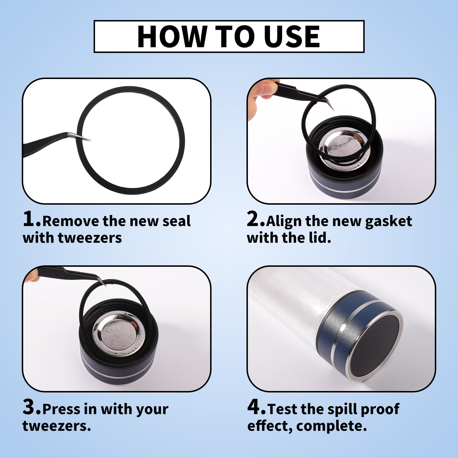 - This contigo water bottle lids replacement is very easy to use, you just gently pull on the existing gasket to remove it and then insert the new gasket into the cover. In just a few simple steps, you can replace your old cup gasket and install a new one, effectively restoring your cup's seal to its original condition.