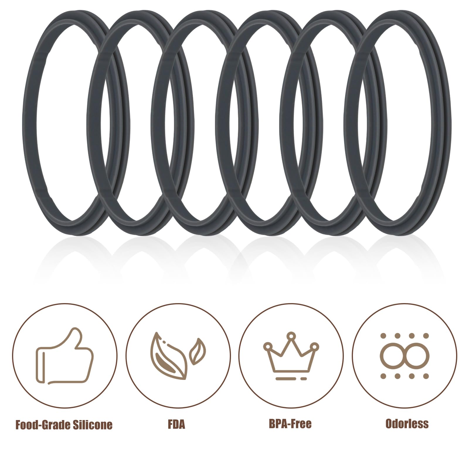 6pcs Water Bottle Lid Gasket, Silicone Water Bottle Cap Seal Ring Gasket O Ring Replacement for Thermos Compatible with Stanley Quick Flip GO, 24oz 36oz Glass Cup (Gray)