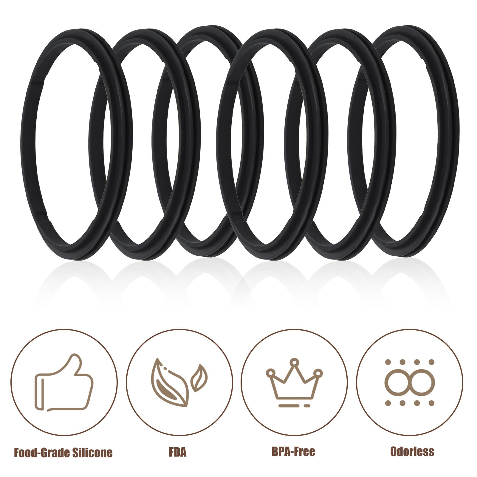 6pcs Water Bottle Lid Gasket, Silicone Water Bottle Seal Ring Replacement Glass Cup Gasket for 24oz 36oz Water Bottle Replacement Compatible with Stanley Quick FLIP GO (Black)