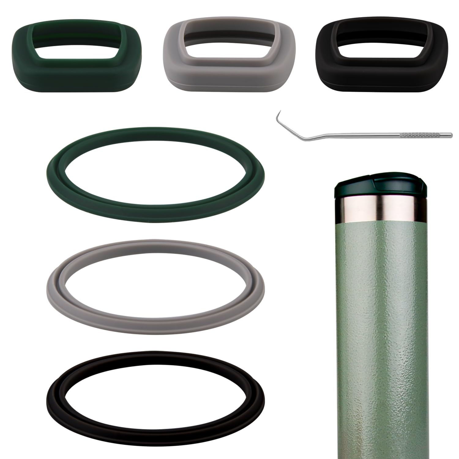 - 7-pack: ubber seal replacement for Stanley AeroLight 16oz/20oz Transit Bottle,Package includes 2 pieces black (1 set) + 2 pieces green (1 set) + 2 pieces gray (1 set) rubber seal replacements + 1 piece removal tool, so you have enough spare parts to keep your cup in the best condition at any time,Improve user experience