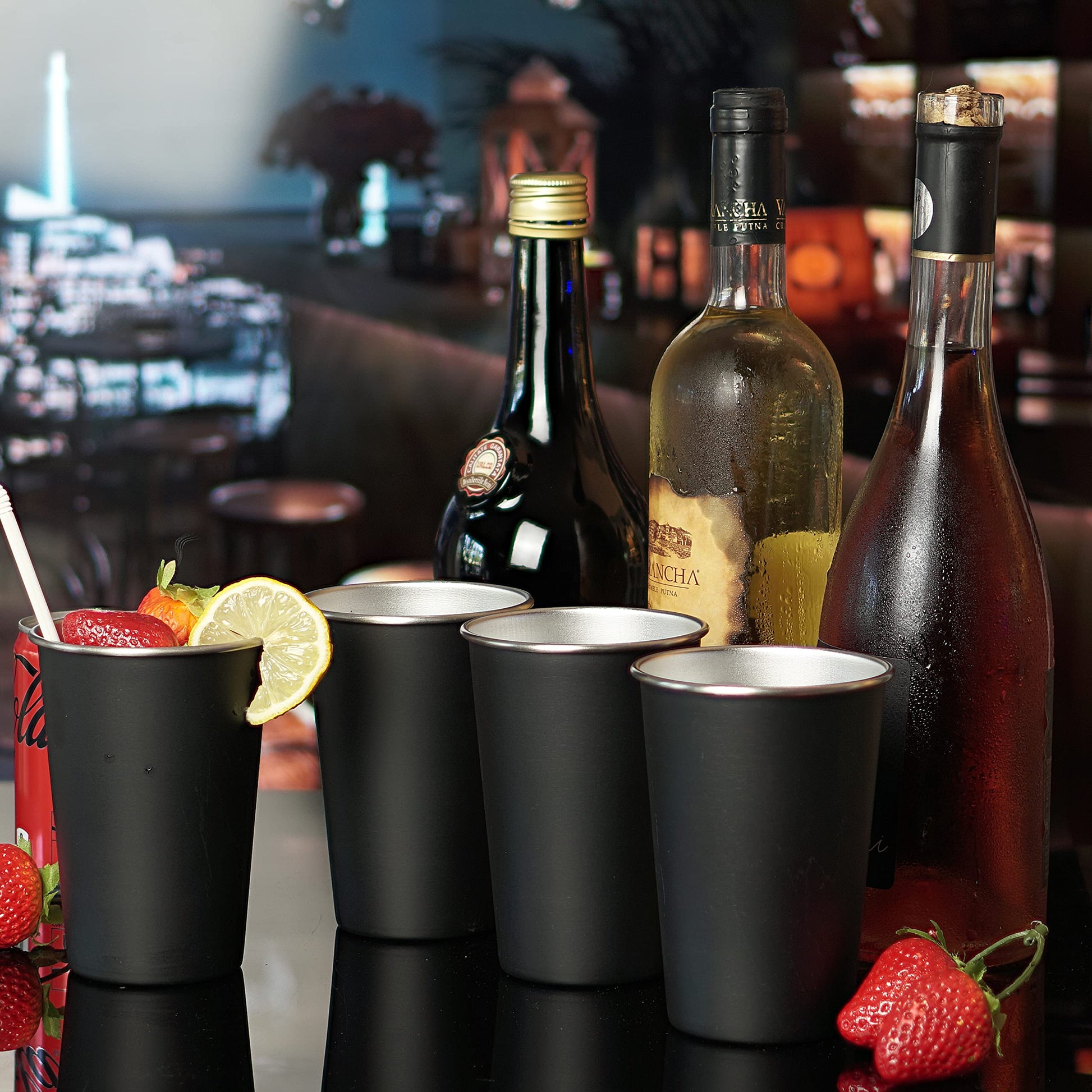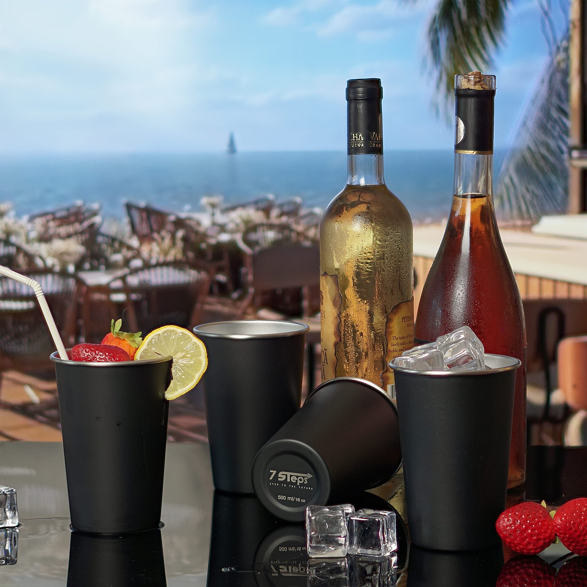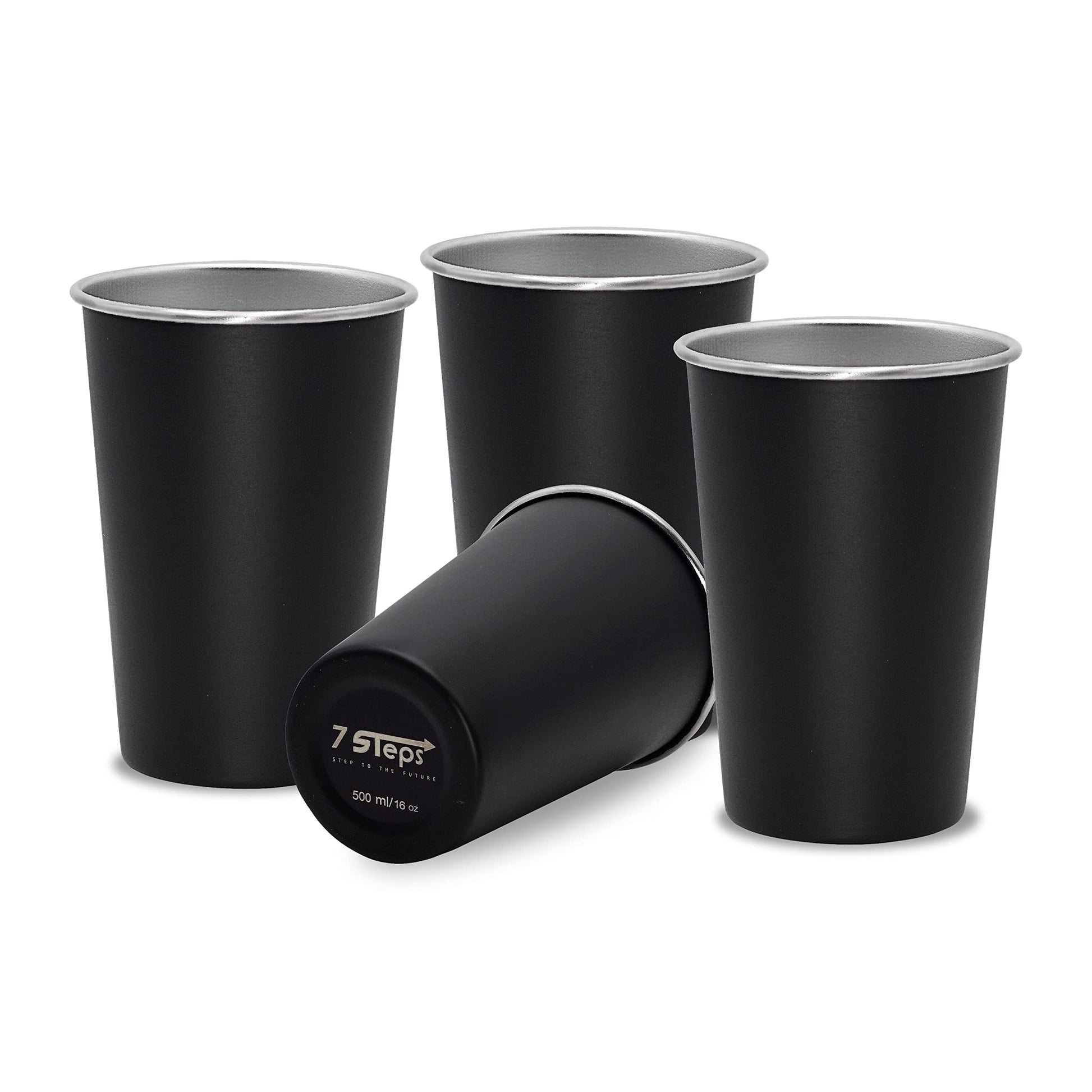 7 Steps - Stainless Steel Pint Cup 500 ml / 16 oz - Durable - Reusable - Party - Outdoor - Hiking - Camping - Picnic - Stackable Cup for Beer Juice Soda (Pack of 4) (Black)