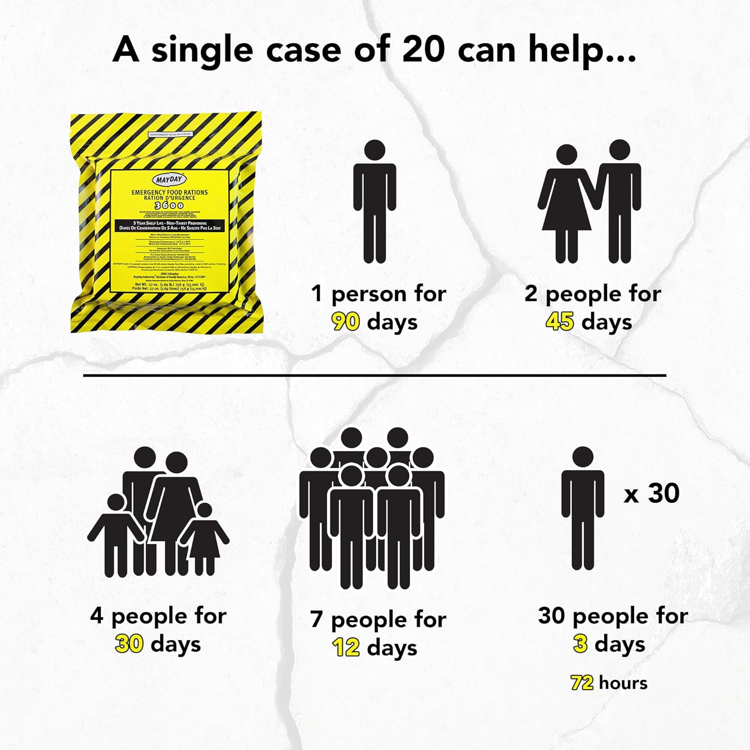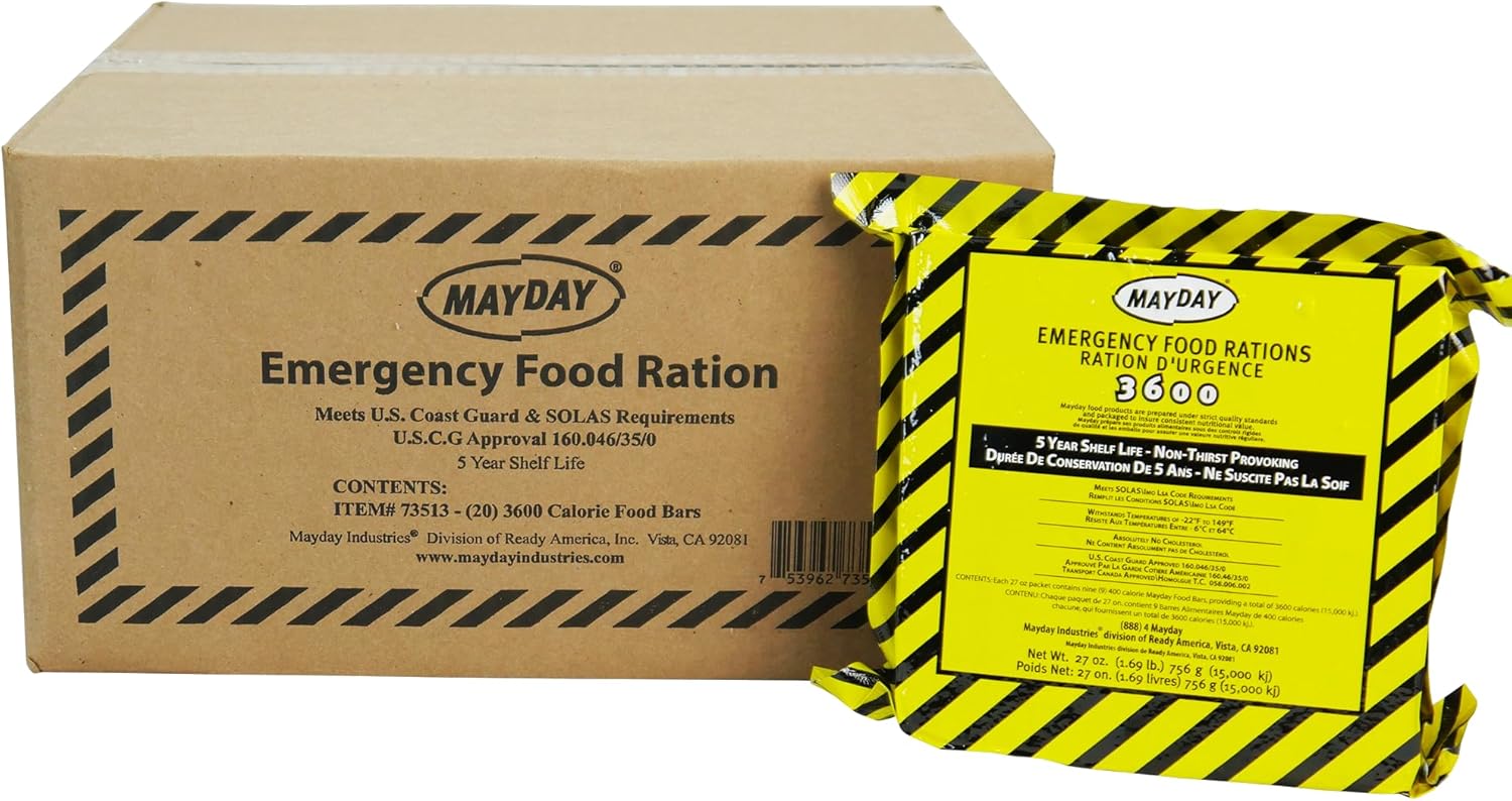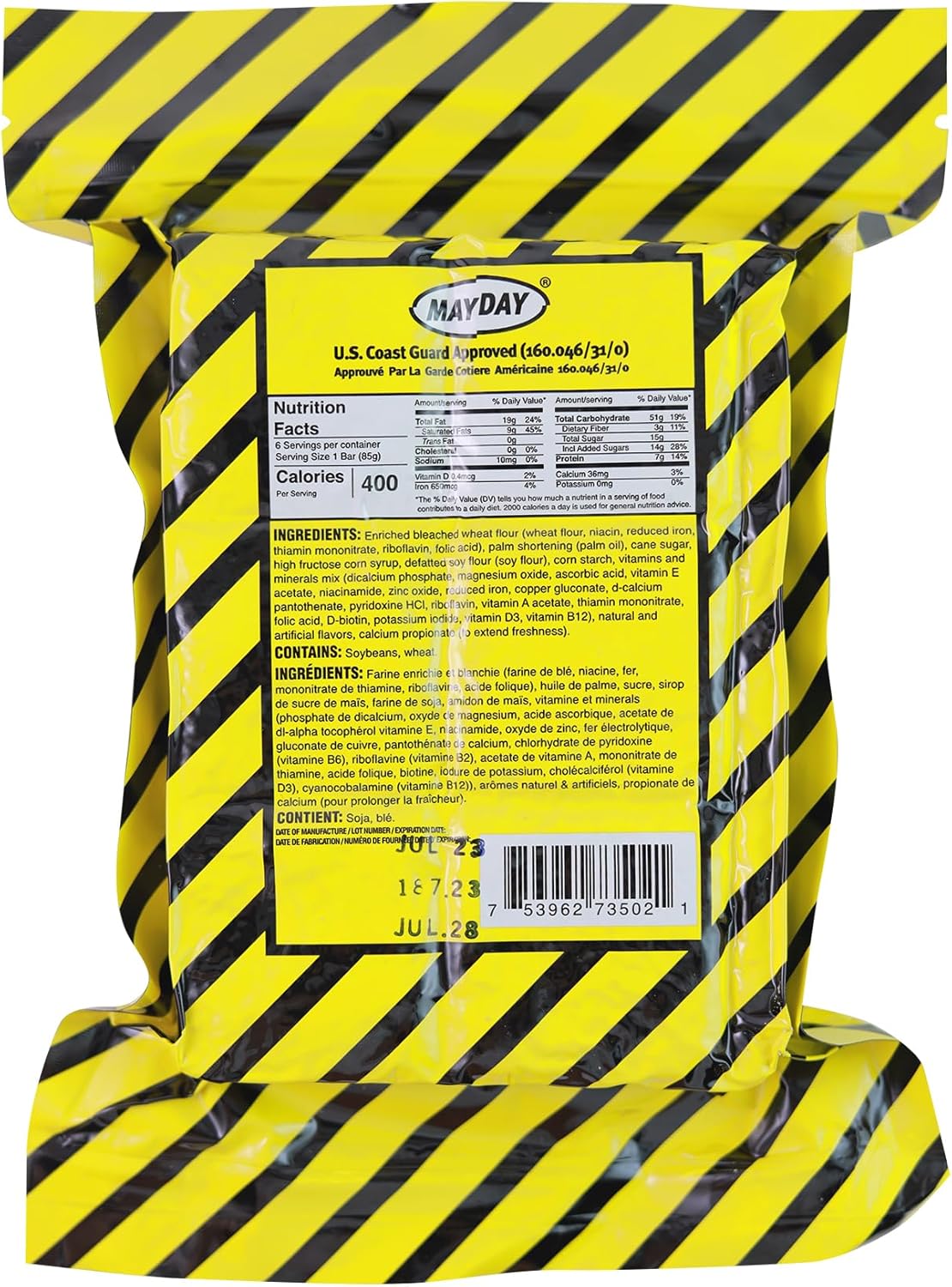 Not only a food ration that tastes great, but is also very nutritious. Approved by the U.S. Coast Guard as well as the Canadian Transport Department and have a five year shelf life. All Mayday food rations are baked under strict supervision and all have that great taste of apple cinnamon. Mayday food rations can be stored outside up to 149 degrees (°F) and can be eaten without preparation.