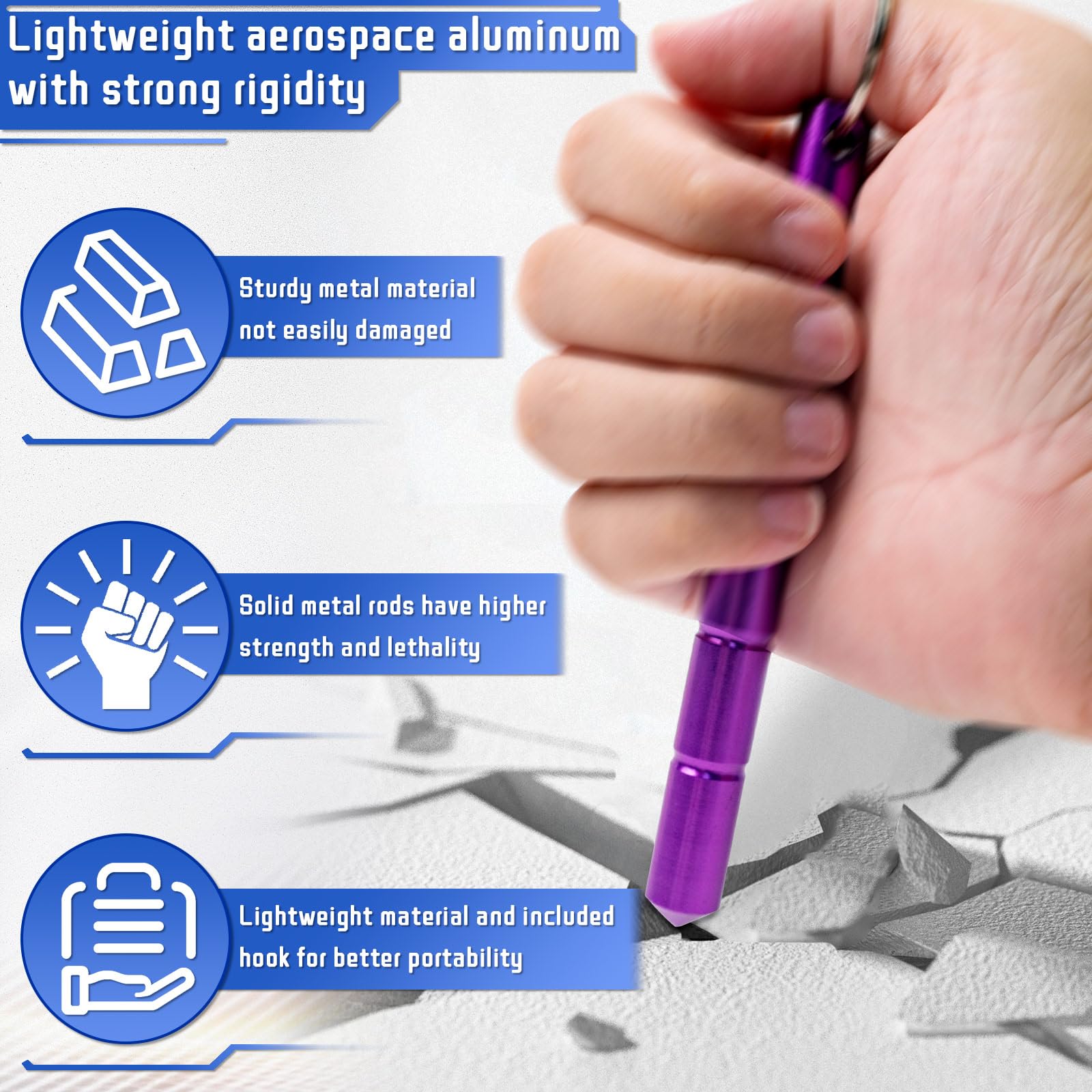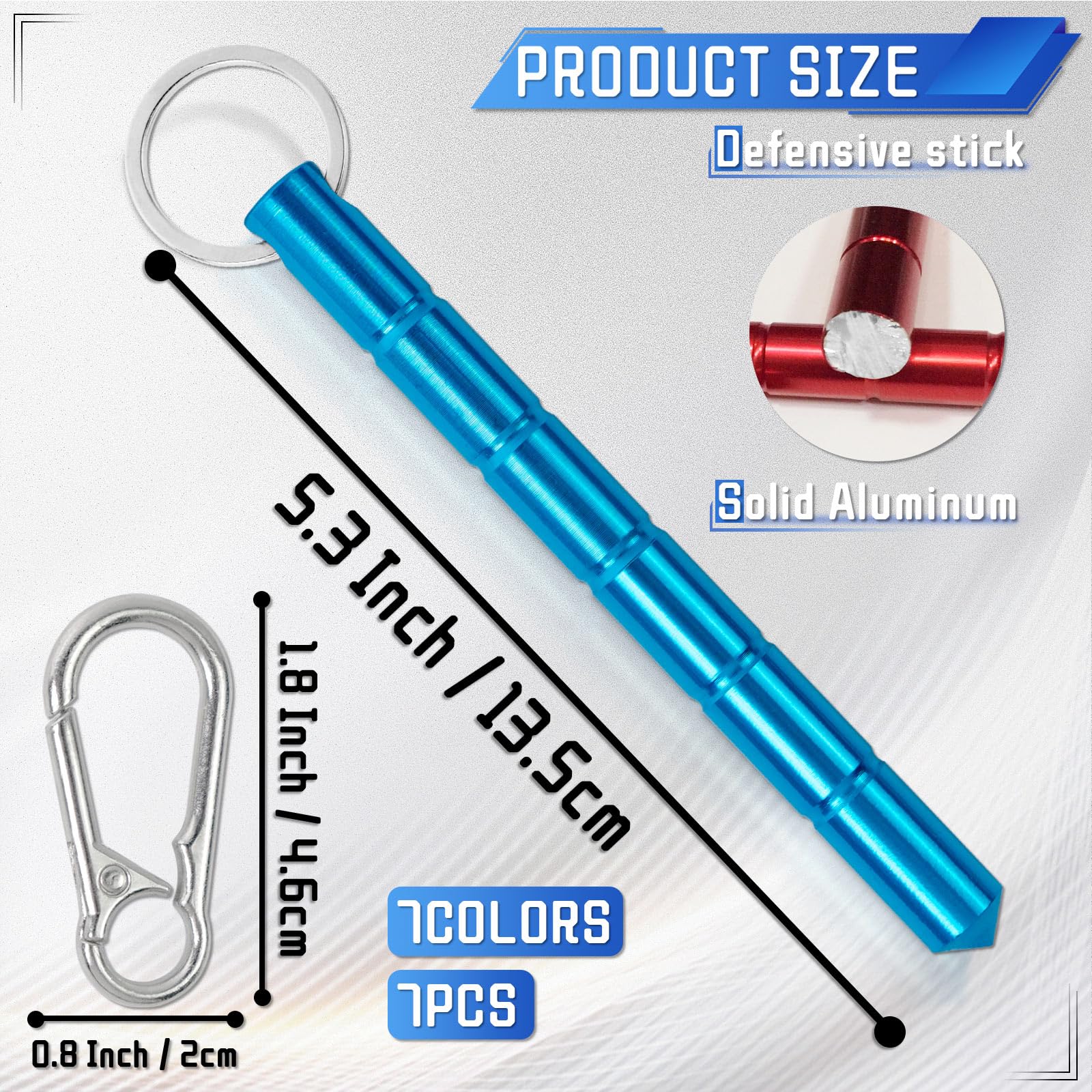 - 【HIGH QUALITY】High quality -- The safety keychain is made of high hardness aluminum alloy with antioxidant, rust and corrosion resistant surface, 5.3 inches in length and 0.5 inches in diameter for excellent strength and portability.
