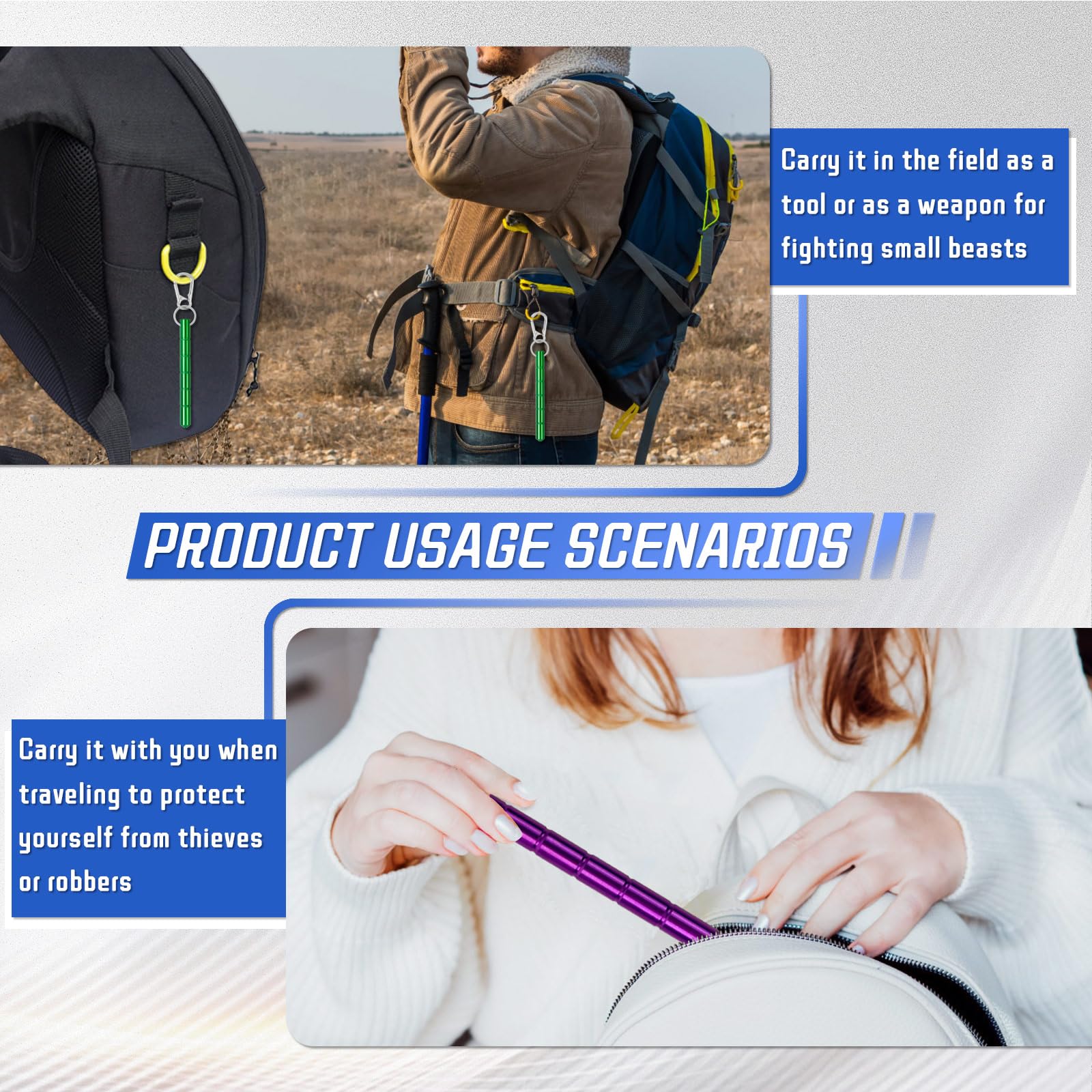 - 【Multiple Uses】Our safety stick is not only a women's body protection weapon, but also an emergency tool, if you are trapped in your car, you can use it as a glass breaker, smash the glass to protect yourself.