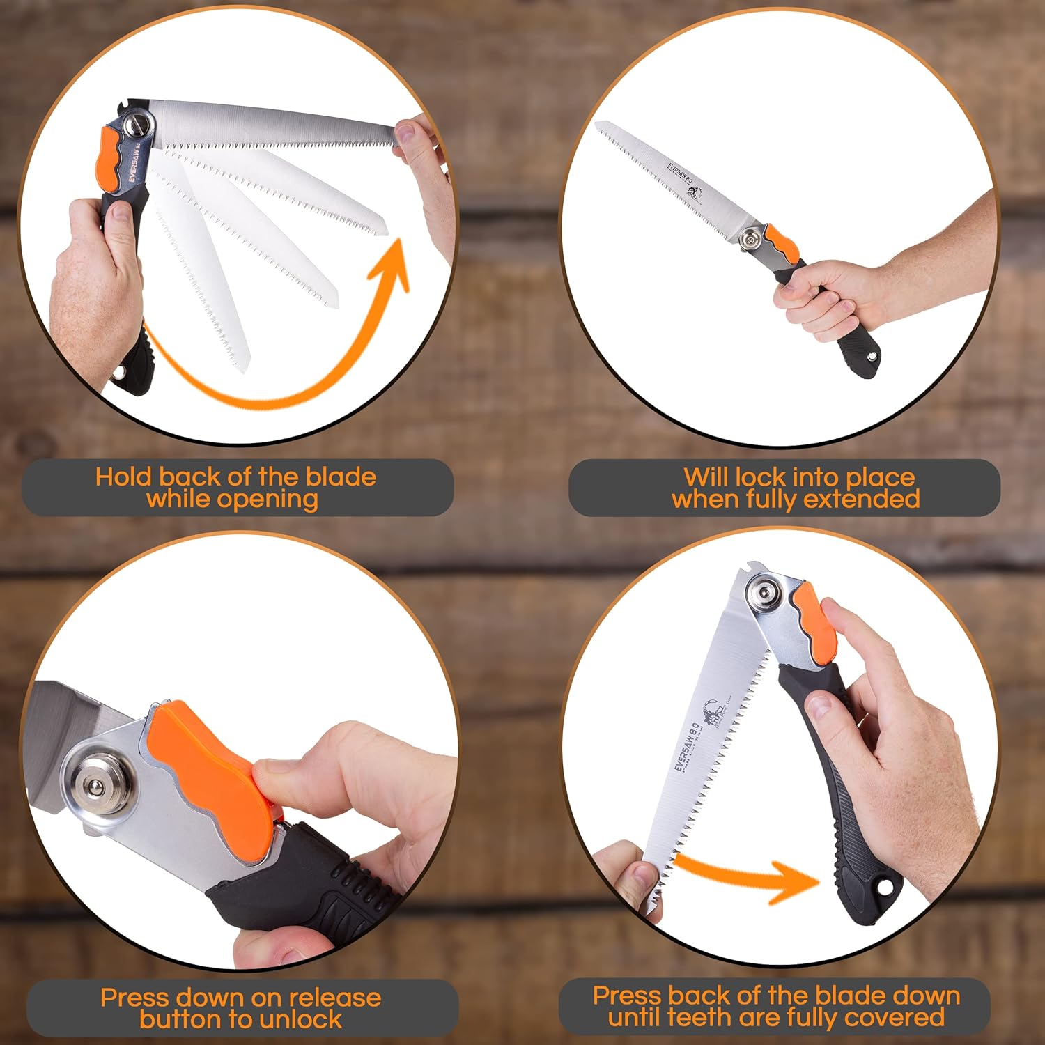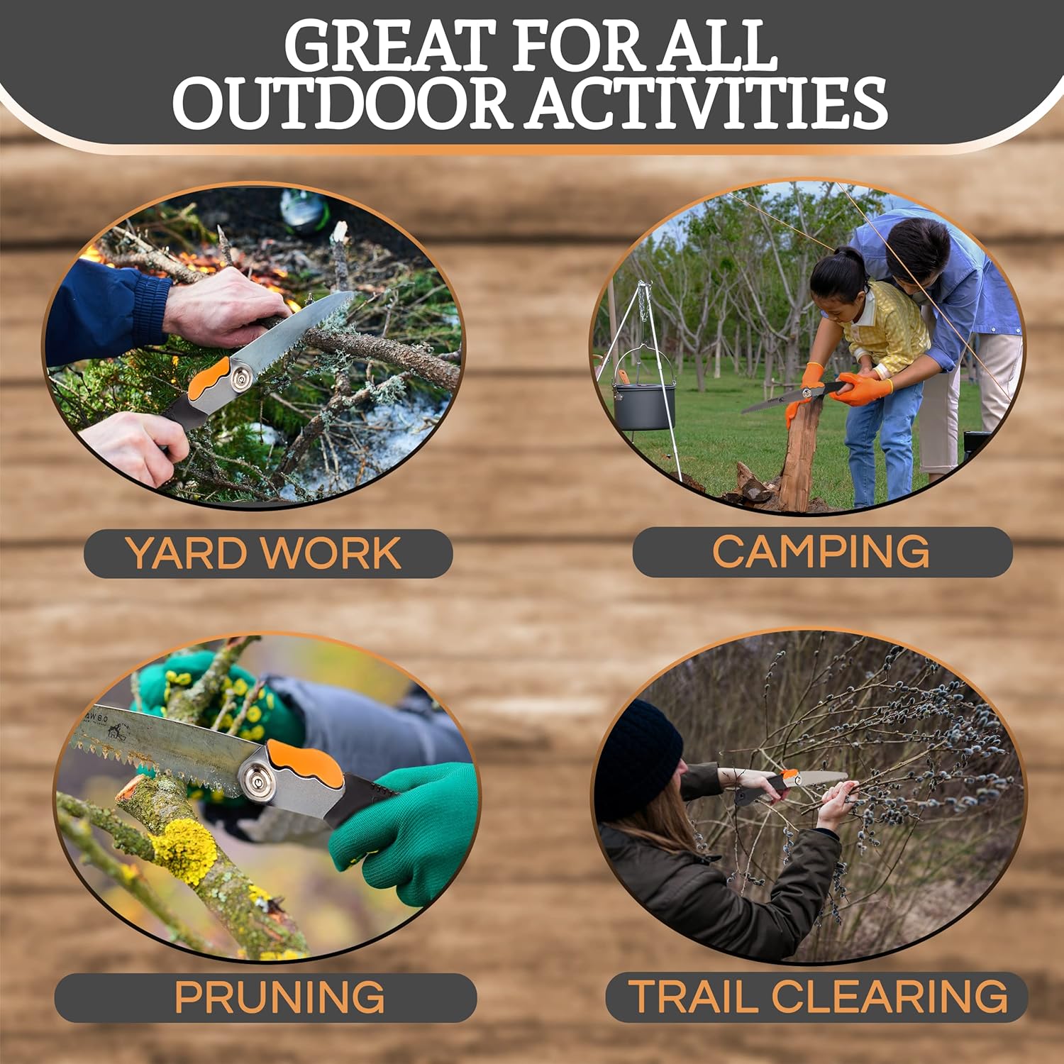 - Multipurpose - From everyday yard work to hiking and bushcraft in the great outdoors our folding handsaw is up to the task. You can use our compact folding saw as a camp saw folding, hand saw for trees, backpacking saw, folding tree saw, folding pruning saw, survival saw, tree branch saw, limb saw, deer bone saw or add it to your hunting saw kit