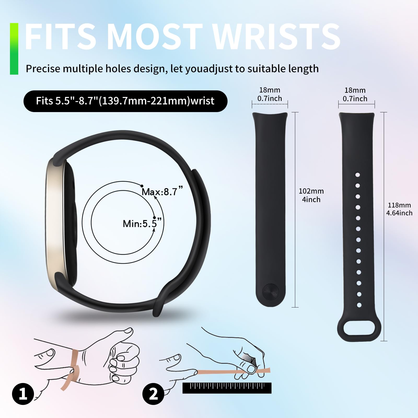 - 【Ergonomic design】118mm+102mm(4.64inch+4inch); Adjustable length: 139.7mm-221mm(5.5inch-8.7inch); The strap has multiple precision cutting holes, you can adjust the length as you like. These watch straps also improve air circulation to prevent sweating. It is lightweight and durable to give you a comfortable experience when you exercise, sleep, etc