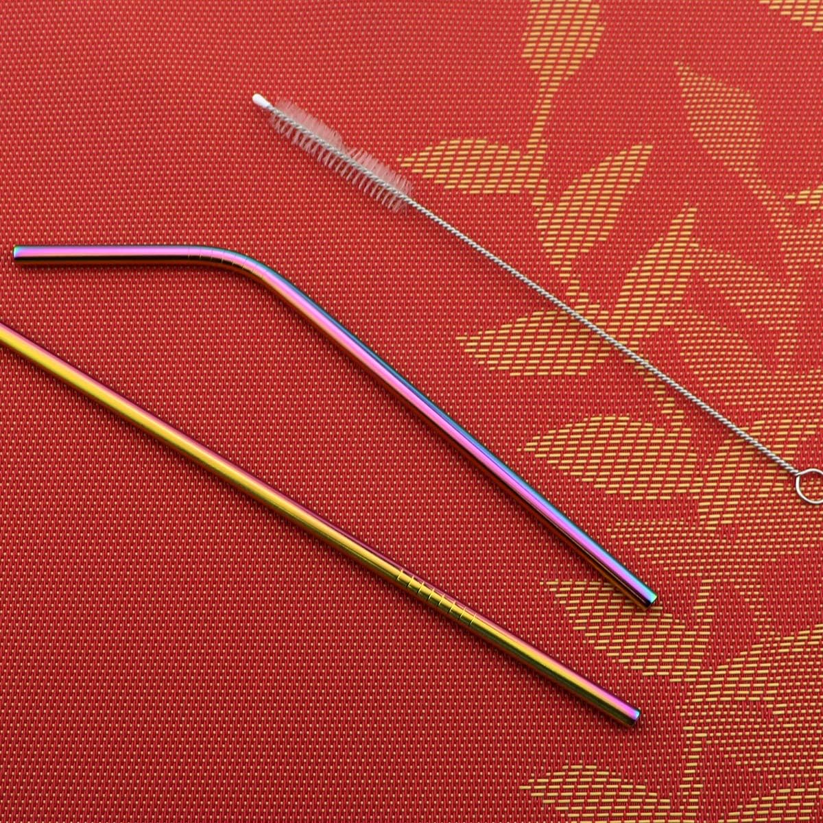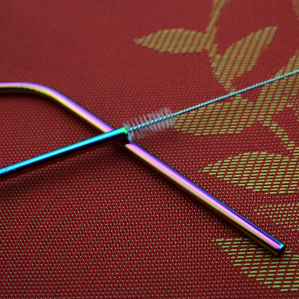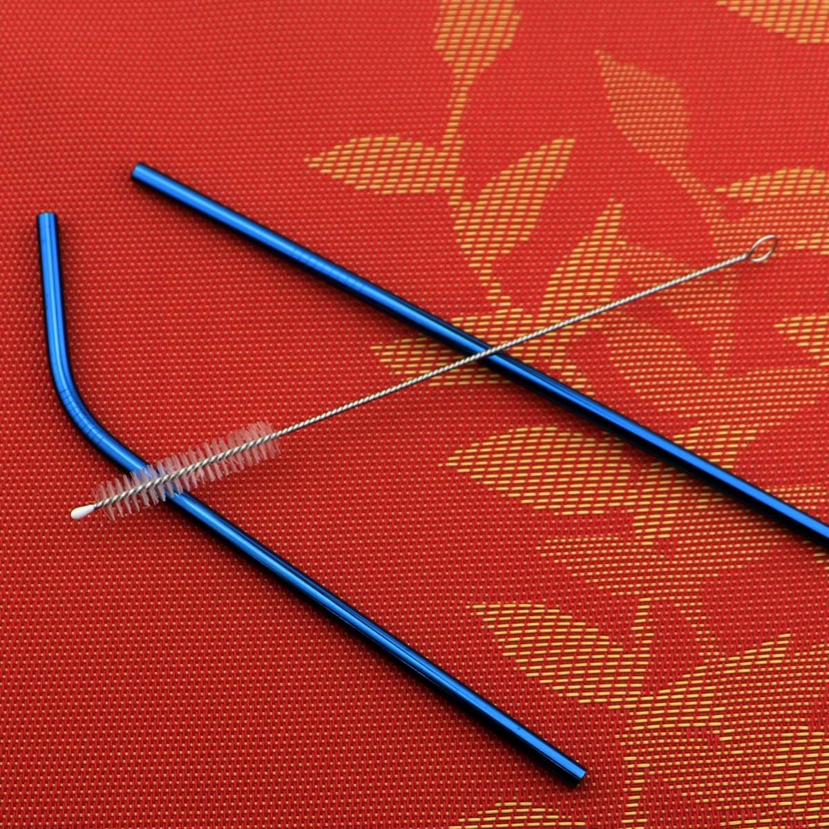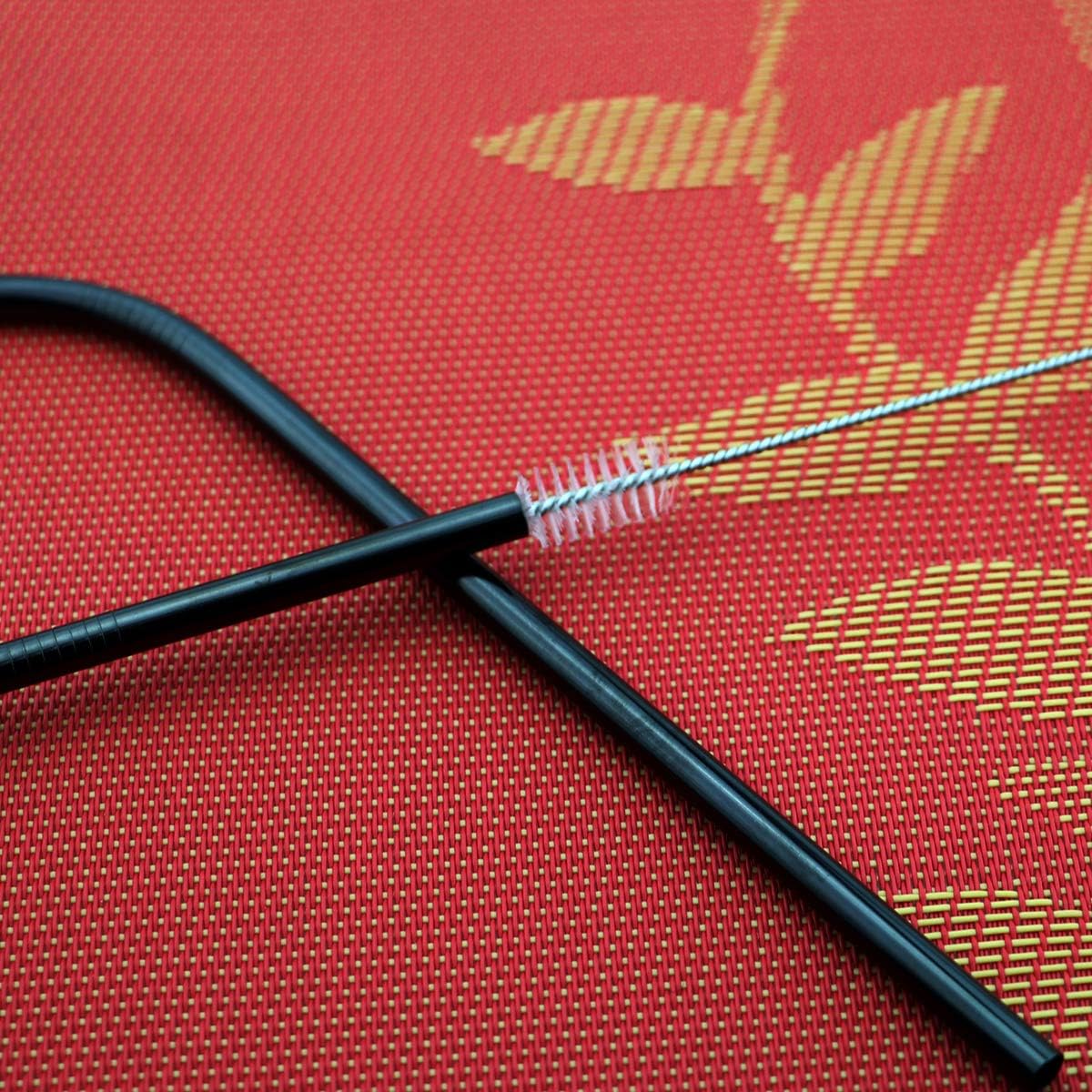 1. 8-piece stainless steel travel cutlery set include a spoon, fork, knife, chopsticks and two straws with cleaning brush.