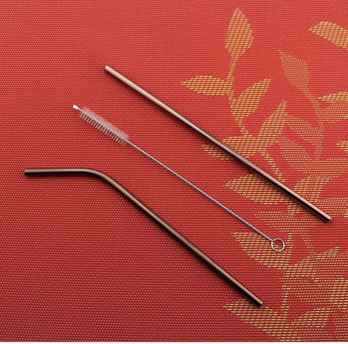 8 Pieces Stainless Steel Mirror Poblished Flatware Set Reusable Cutlery Set Travel Utensils Set with Straws for Camping Office or School Lunch,Dishwasher Safe (Rose Gold)
