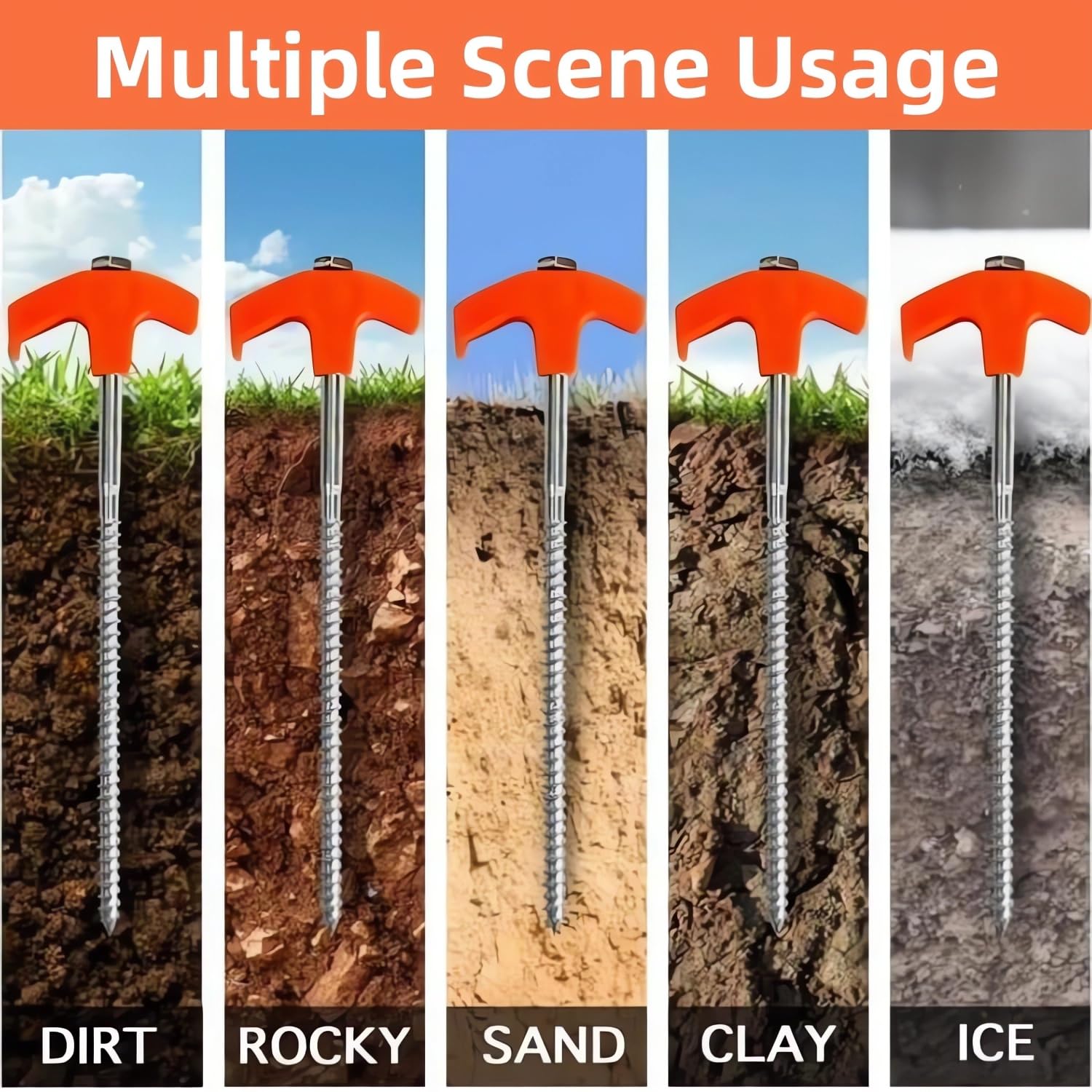 - ââșă8" Screw in Tent Stakes - Heavy-Duty Constructionă: Our 8" screw in tent stakes are designed for durability and reliability in any outdoor setting. Crafted from robust materials, these stakes provide maximum stability to keep your tent secure even in challenging weather conditions.