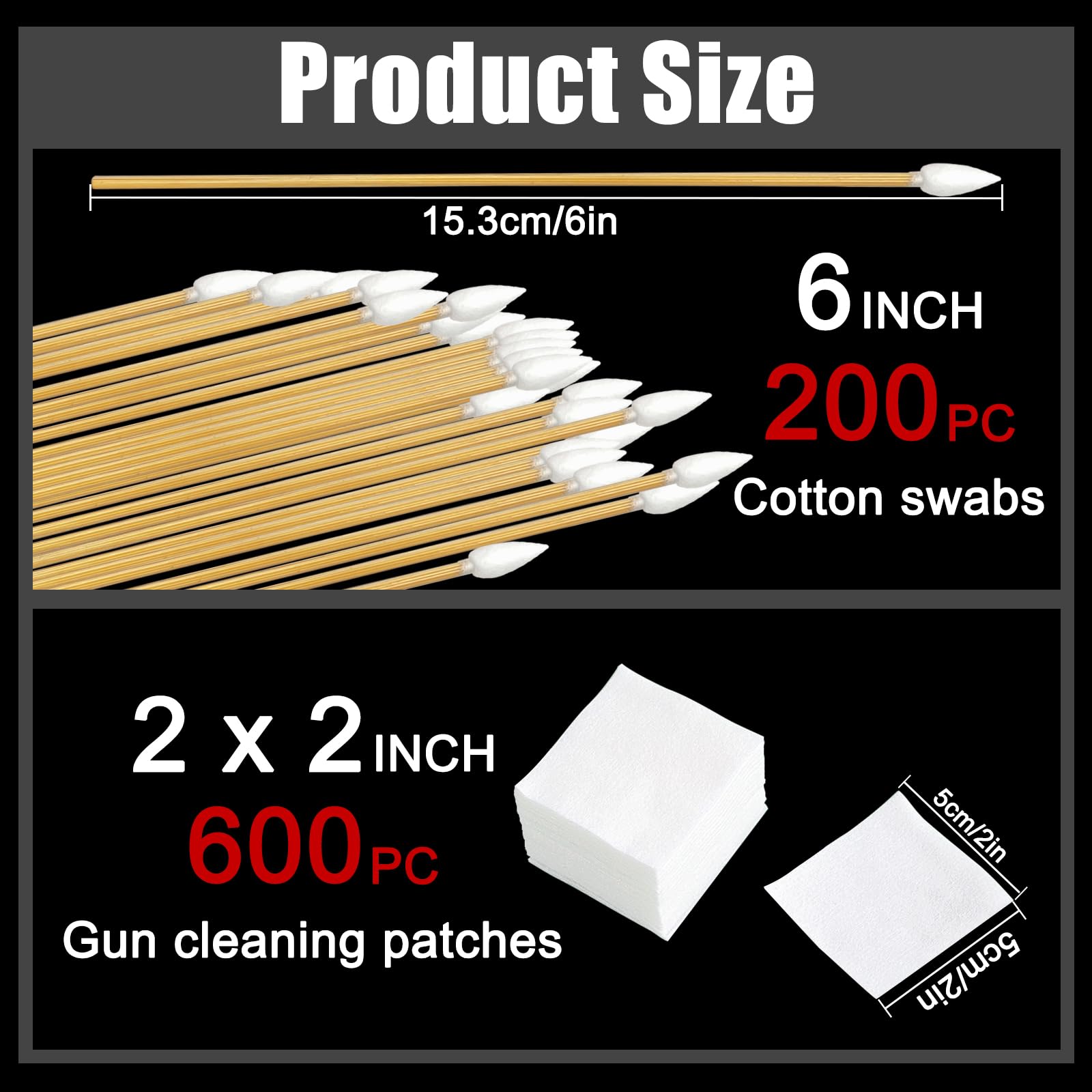 - Universal Gun Cleaning Kit : Includes 600 pcs lint-free gun cleaning patches and 200 pcs 6-inch cotton swabs. Provides everything needed for effective cleaning of rifles, pistols, handguns, and more, ensuring thorough maintenance
