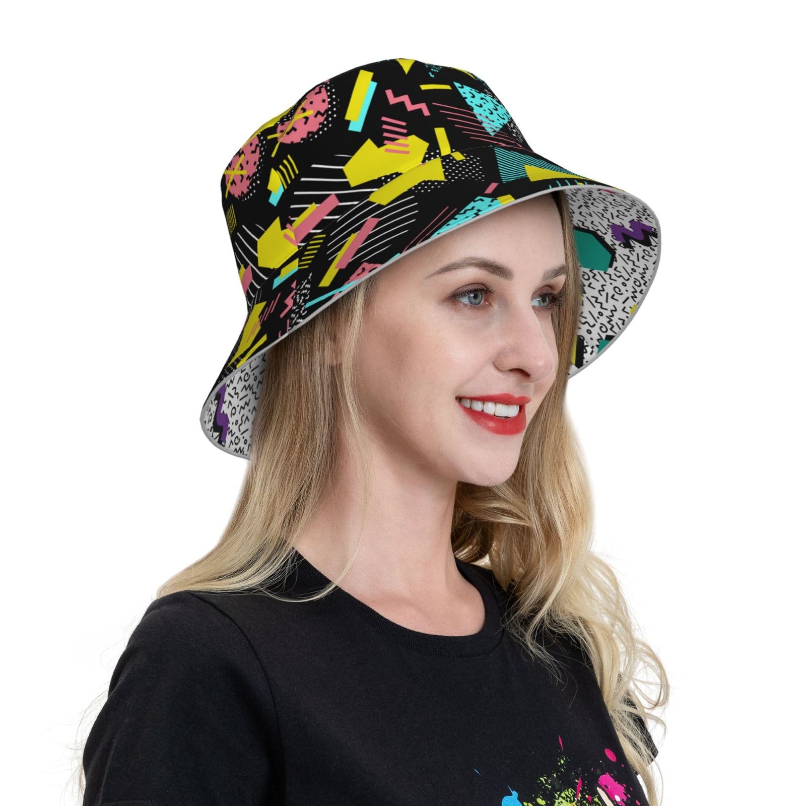 80s 90s Funny Colorful Bucket Hat Beach Summer Sun Hat Reversible Fisherman Hats Double Sided Wearing for Women Men Boys Girls
