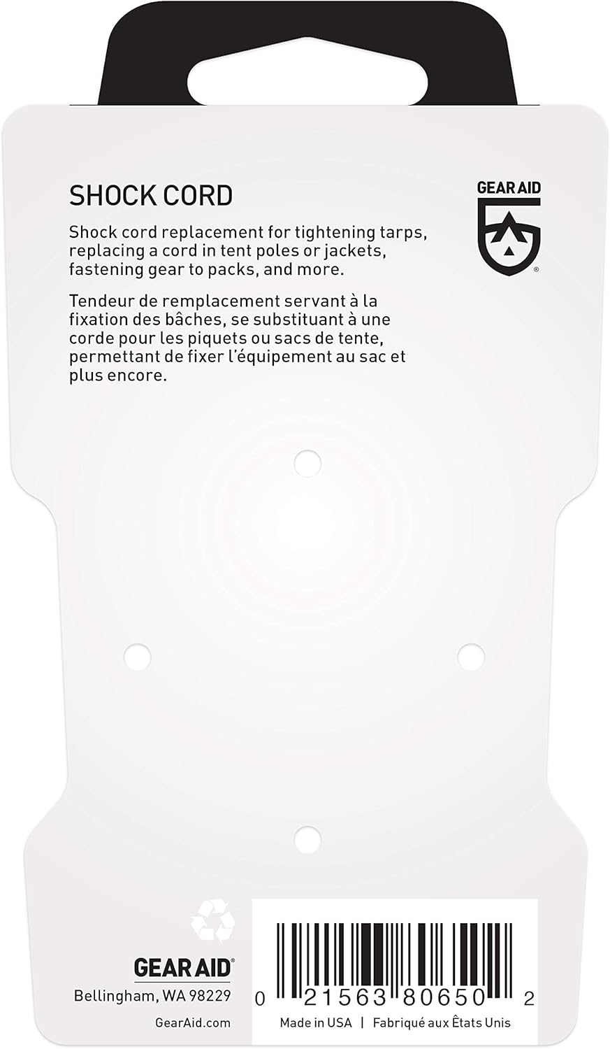 Part of GEAR AID’s complete line of replacement parts, this Elastic Shock Cord is a must-have tool in every outdoor pack. At 84” long, the cord is rigid, yet stretchy – making it ideal for replacing shock cords in tent poles, jackets, and hammocks. Or tighten tarps and get knot-free guylines when used with GEAR AID Tent and Tarp Lie Locks. When unplanned situations call for a versatile tool, use the Elastic Shock Cord for adventures big and small.