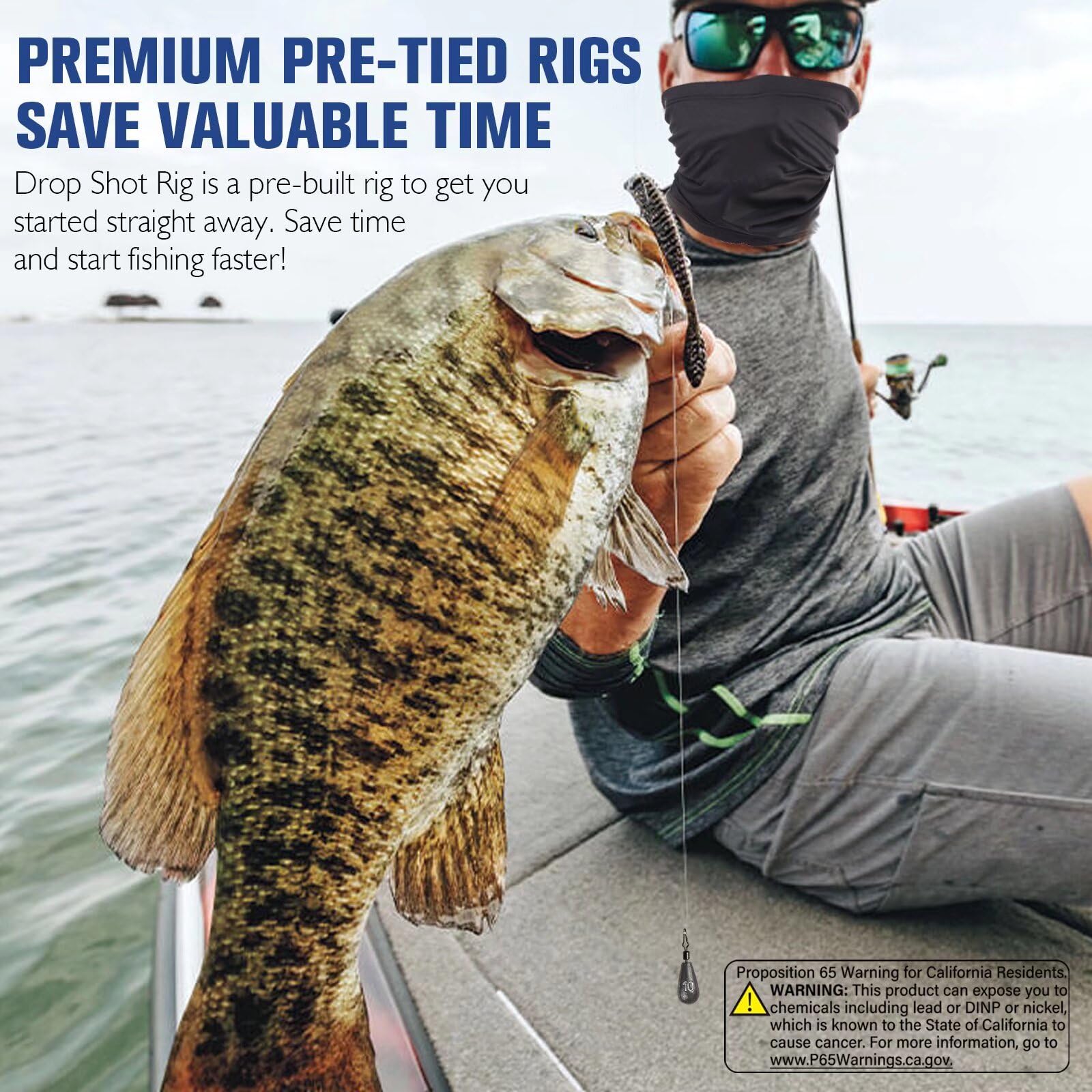 - Premium Pre-tied Rigs Save Valuable Time: Drop Shot Rig is a pre-built rig to get you started straight away. Save time and start fishing faster! Strong and abrasion-resistant fluorocarbon line, quick-sinking drop shot weights, and 360° rotating fishing swivel make fishing easy. For beginners start fishing, this wiil be an excellent purchase! These fishing rigs are suitable for largemouth bass, smallmouth bass, spotted bass, panfish.
