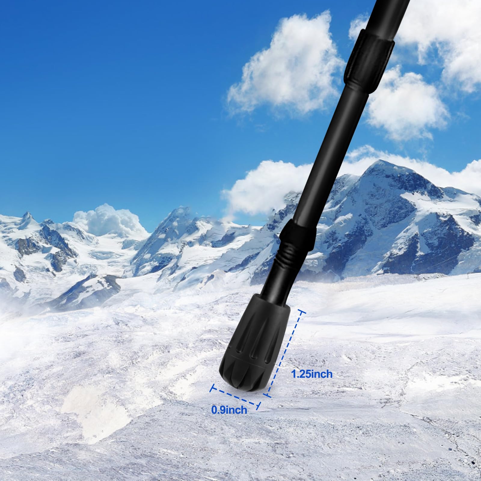 - BETTER TRACTION : On pavement, concrete, wooden floor, or even when you're jumping between boulders,these walking poles rubber tips can be widely used for any terrain, especially rocky, gravel, mud, sand, rain, snow or other harsh terrain. Hiking stick tips help prevent slipping and improve stability.