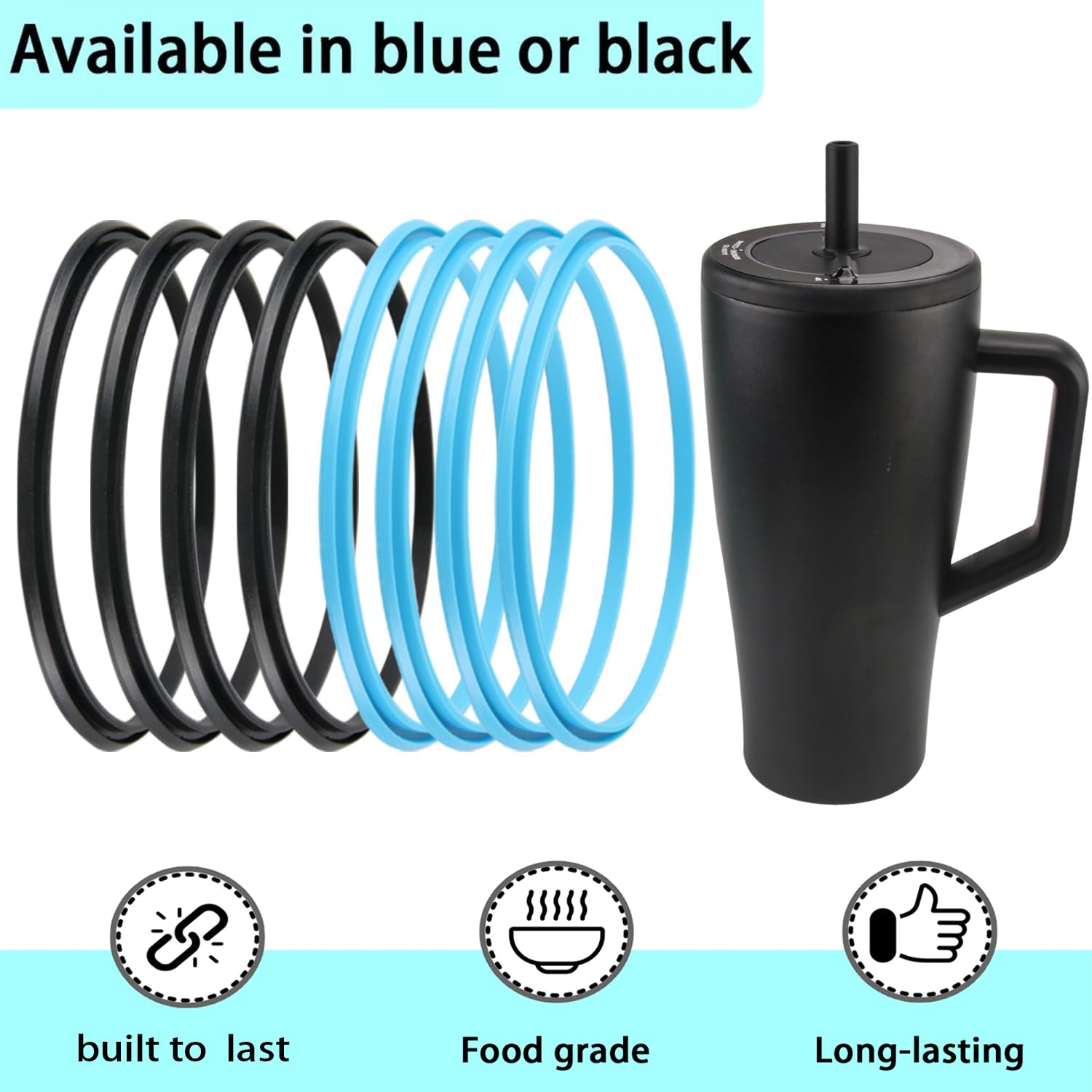 (8pcs) ubber Seal Replacement for BruMate Era - 30oz Leak Proof Insulated Coffee MugSeal Gasket for BruMate Era - 30oz Bottle Leak Proof Insulated Travel (8, Black/Blue)