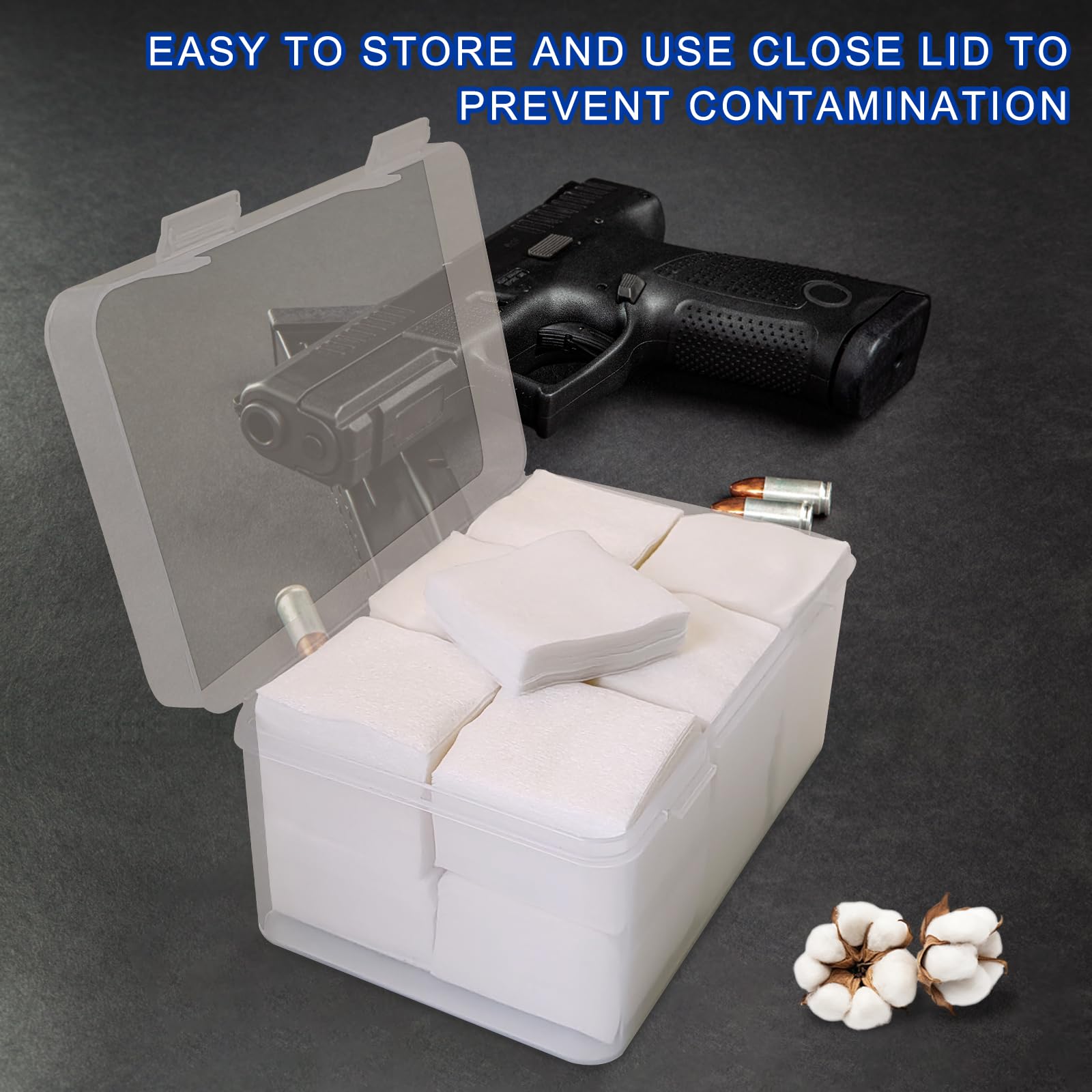 900 PCS Gun Cleaning Patches, 2x2 Inch Square Lint-Free Cotton Pads for 9mm, Rifle, Shotgun & Firearm Maintenance - High Absorbency Gun Cleaning Wipes, Cloth, Pads with Storage Case