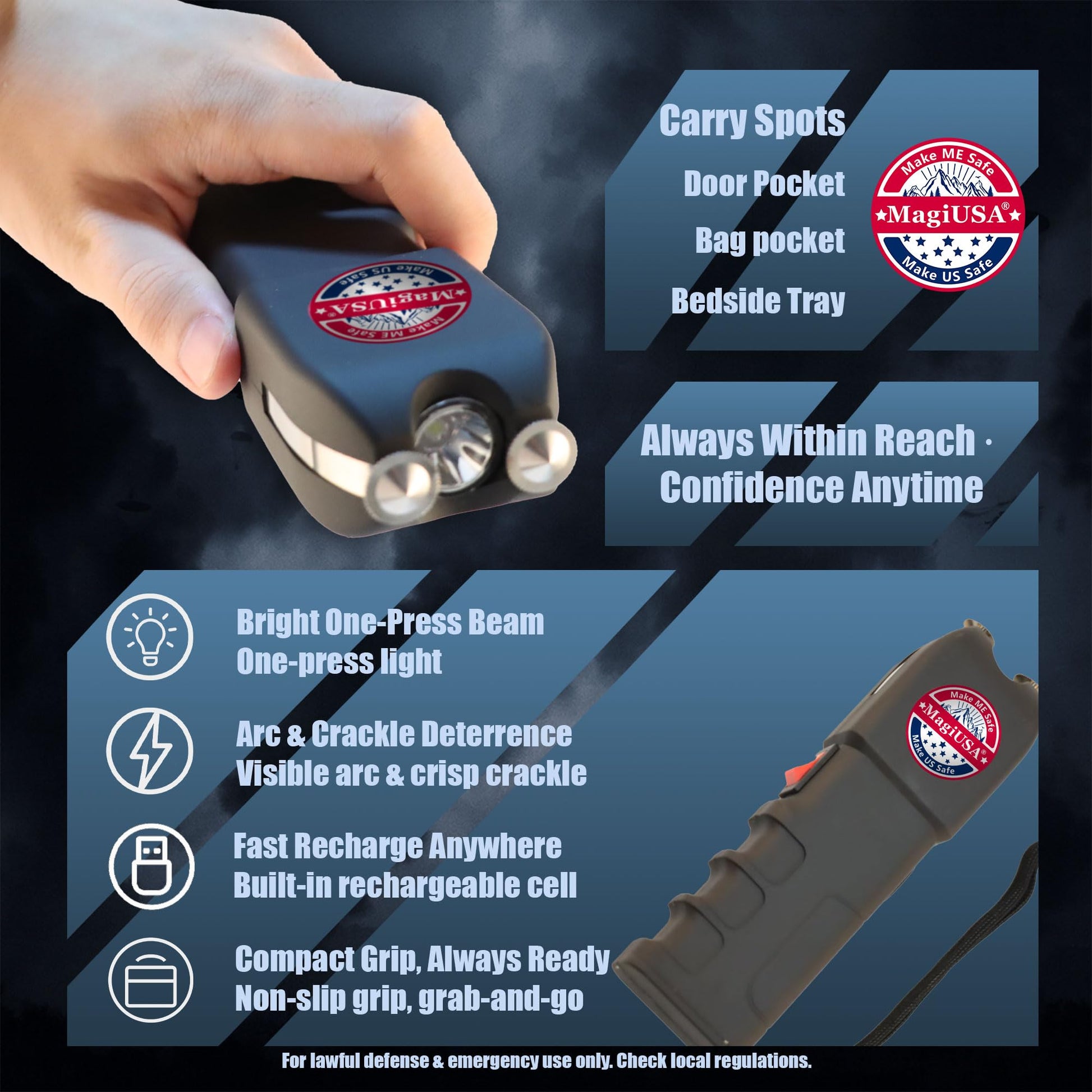 989 MagiUSA Billion Volts Heavy Duty Stun Guns tazer and Flashlight 2 in 1 tazor Stun Gun Non Lethal Big tazers ungun Self Defense Weapons kit for Men Women Tools taiser Safety Keychain taizers tasor