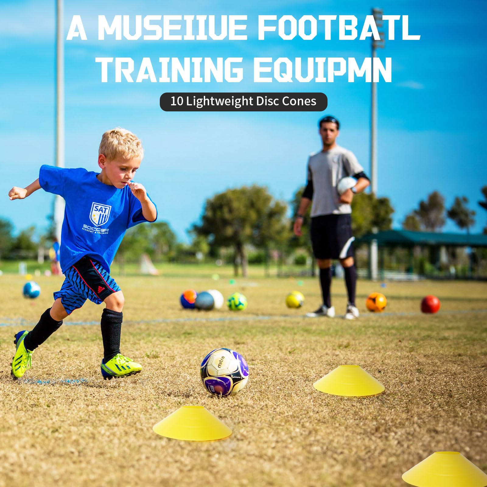 - Complete Set of Football Training Equipment: This football training kit Includes 1 Agility Ladder (20ft long with 12 rungs), 1 Running Parachute, 10 Cones, 4 Fixable Stakes, 1 Jump Rope, 5 Resistance Bands, 1 Sports Headband, 1 Sweat Towel, 1 Training Guide Book, and 1 Carry Bag